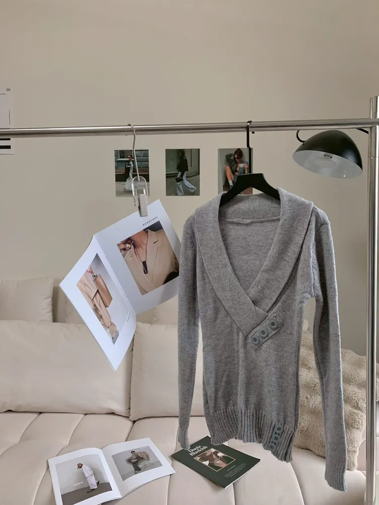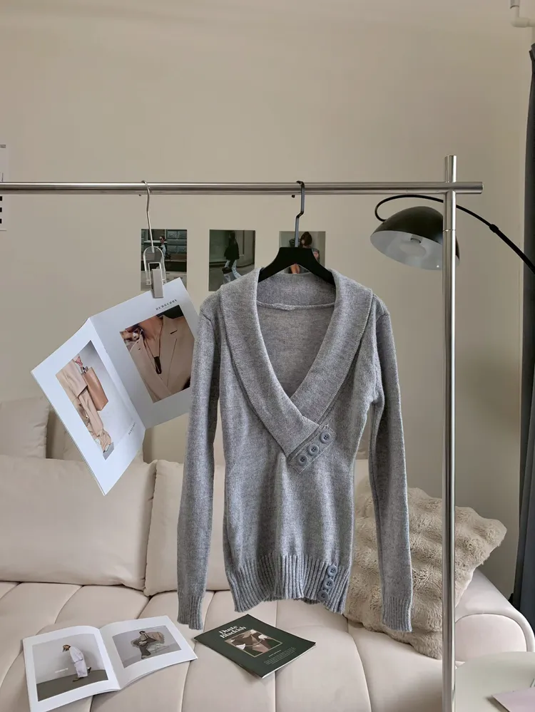 C101側鈕扣V領針織長版上衣