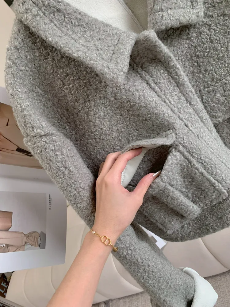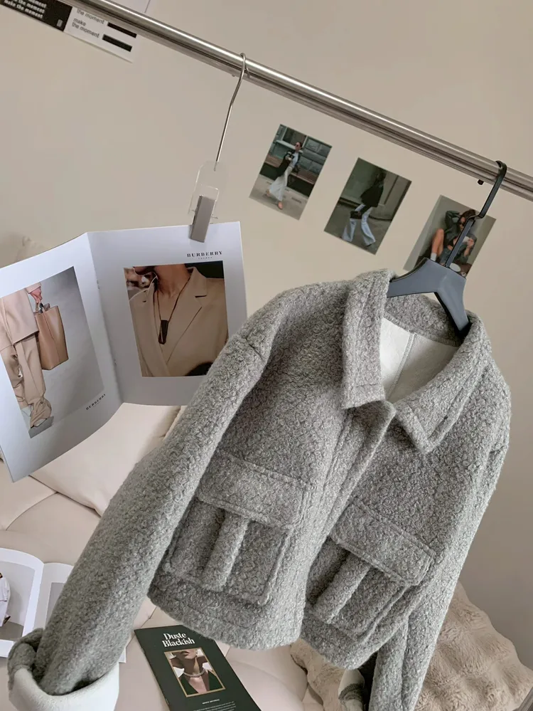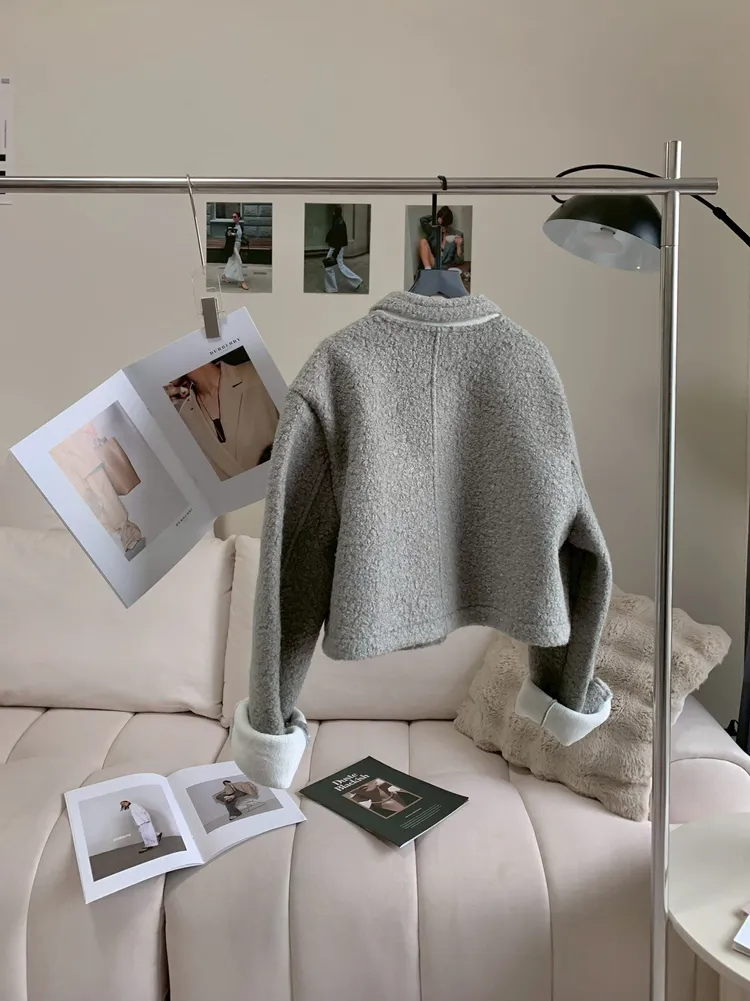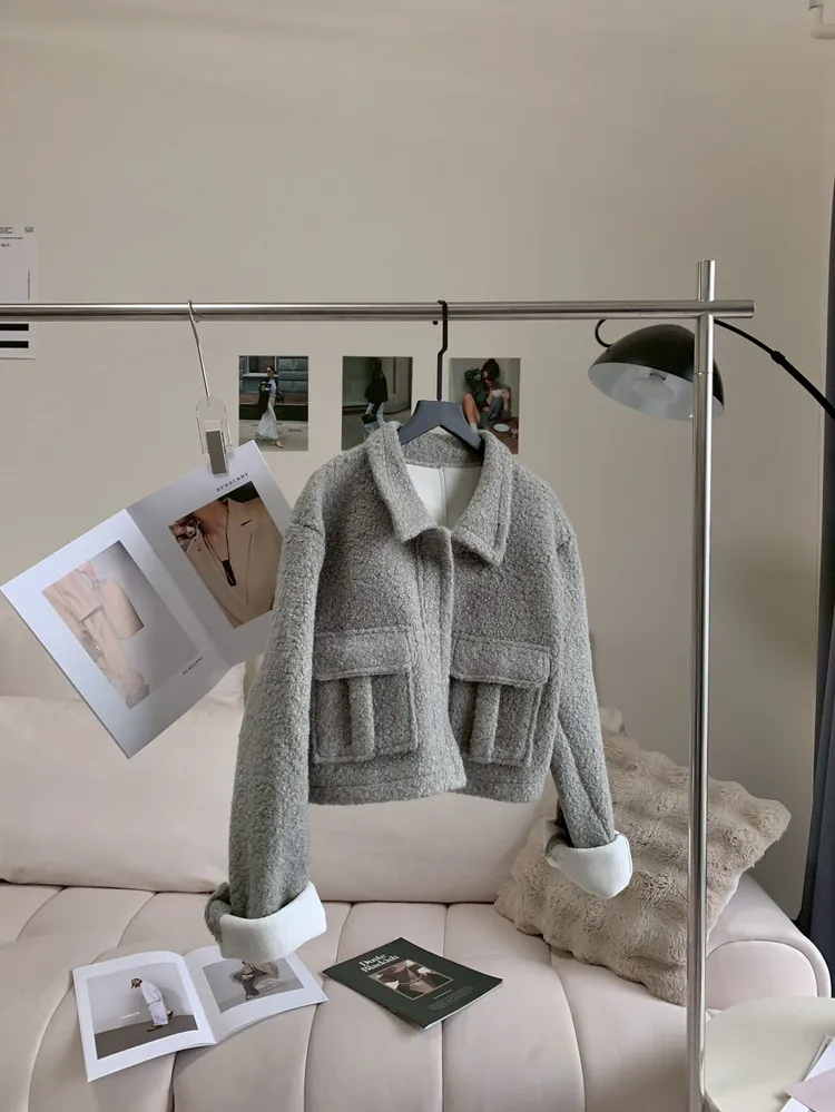 C127北歐絨奶灰色口袋外套