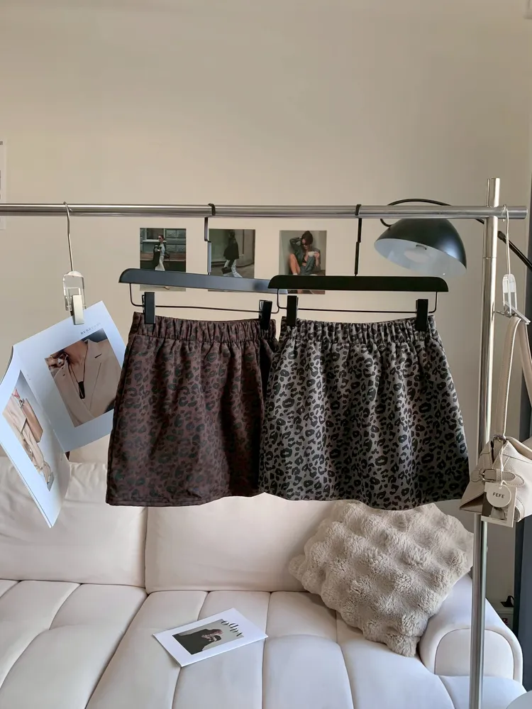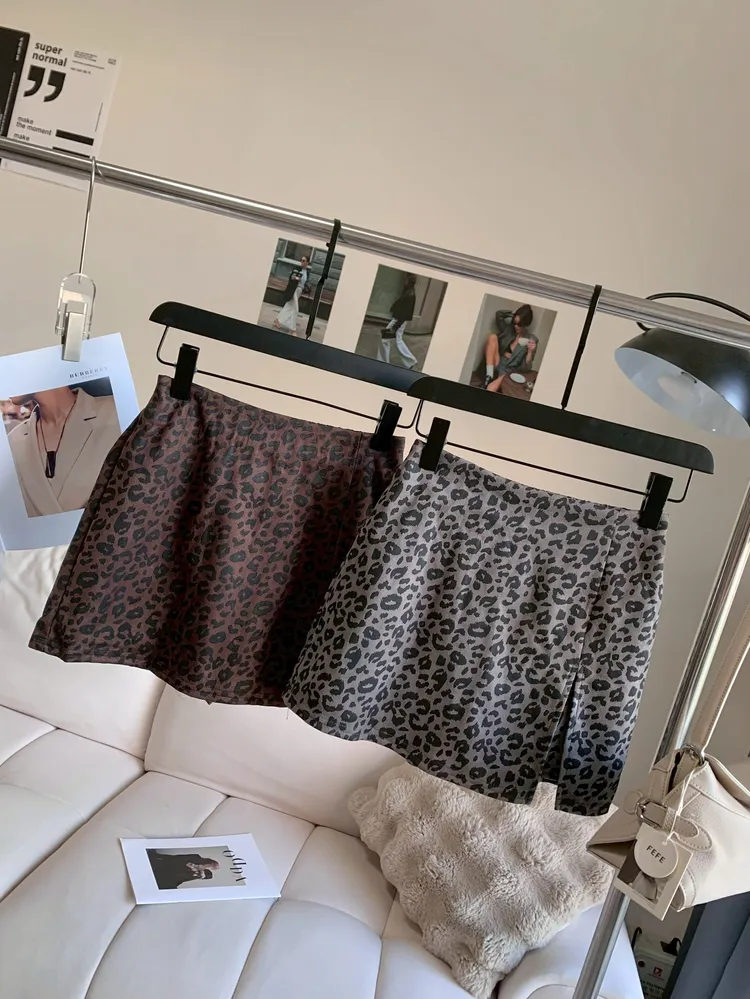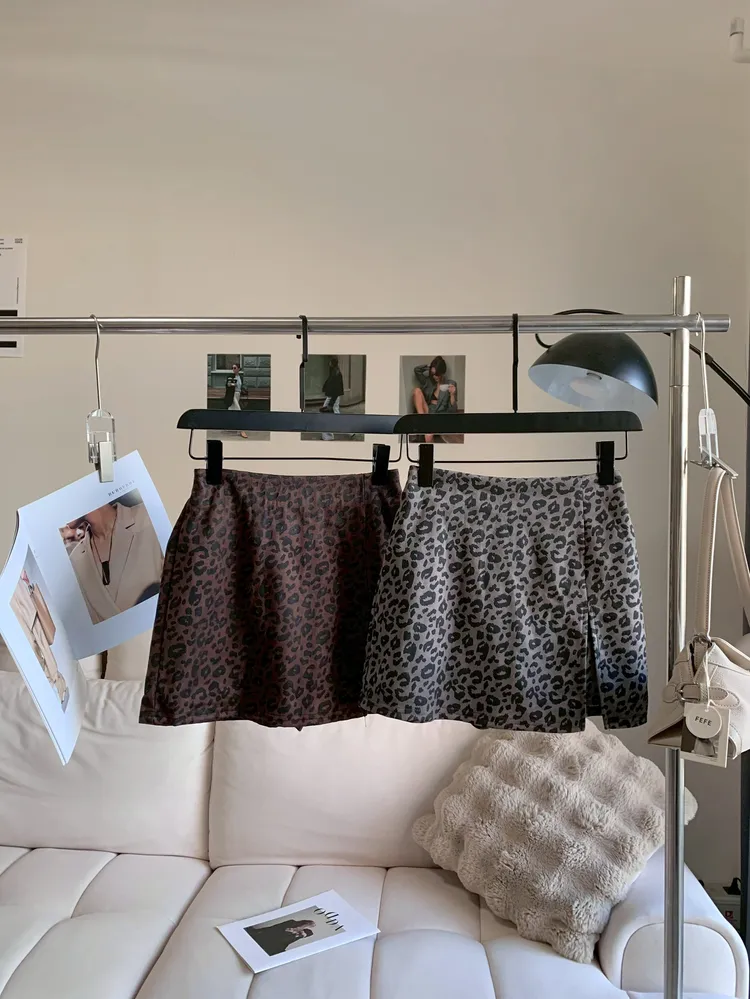 C142時髦側開高腰豹紋短裙