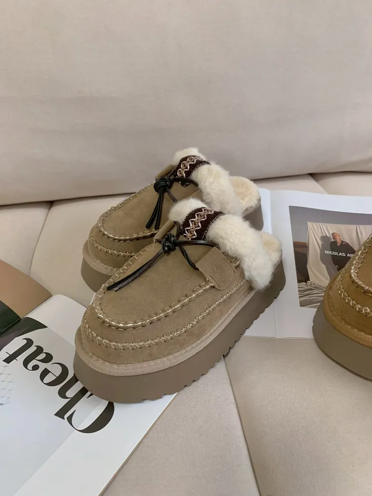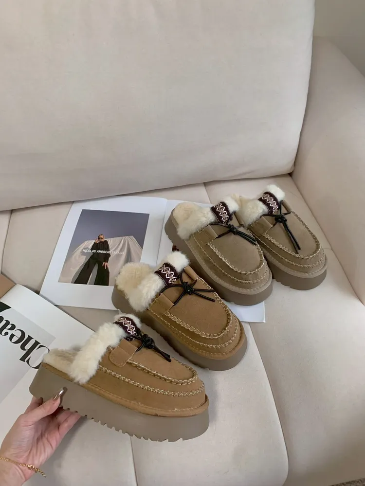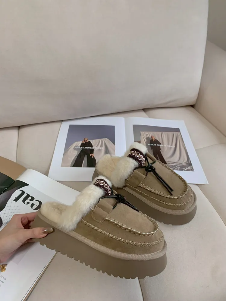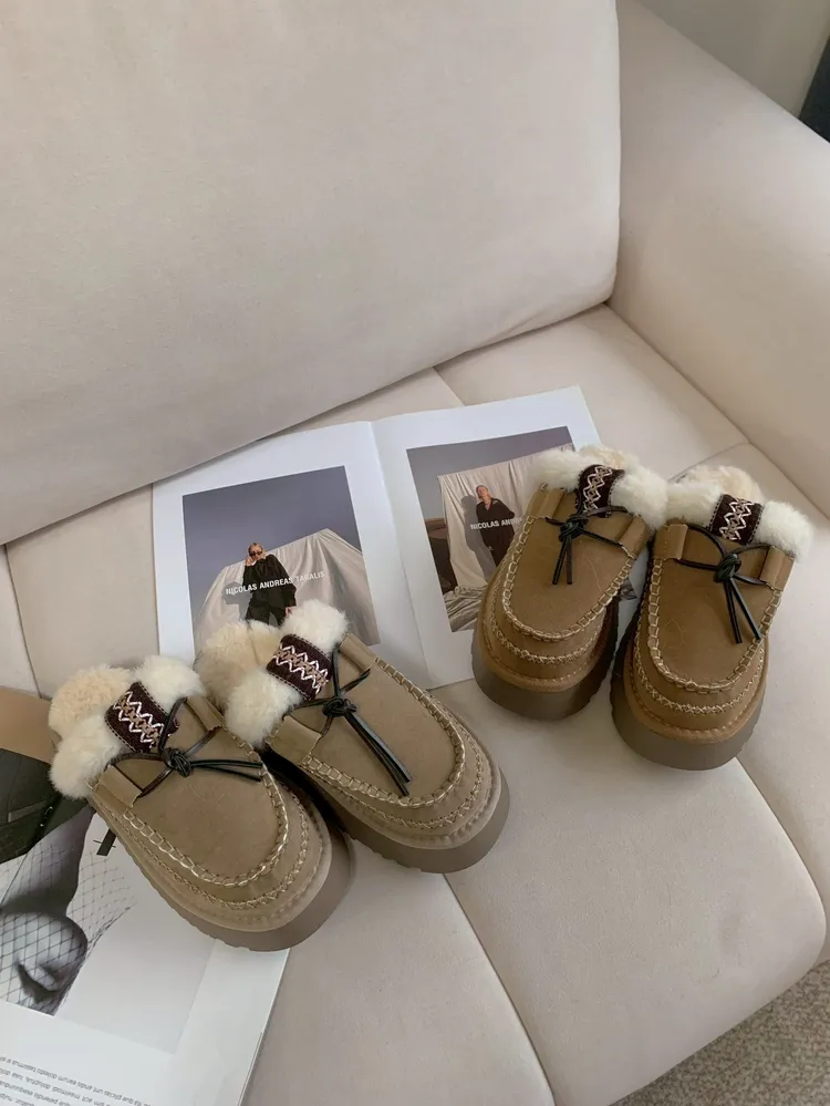 C147編織圖騰毛毛雪靴半拖鞋