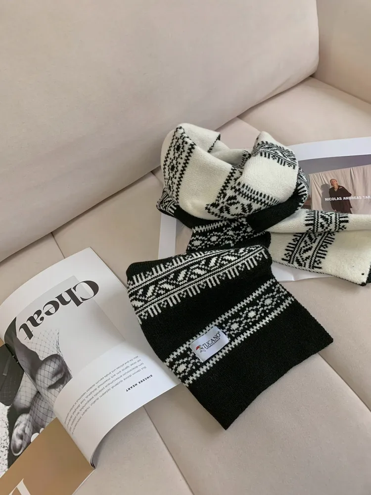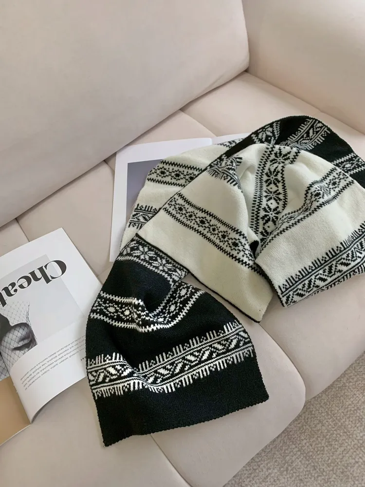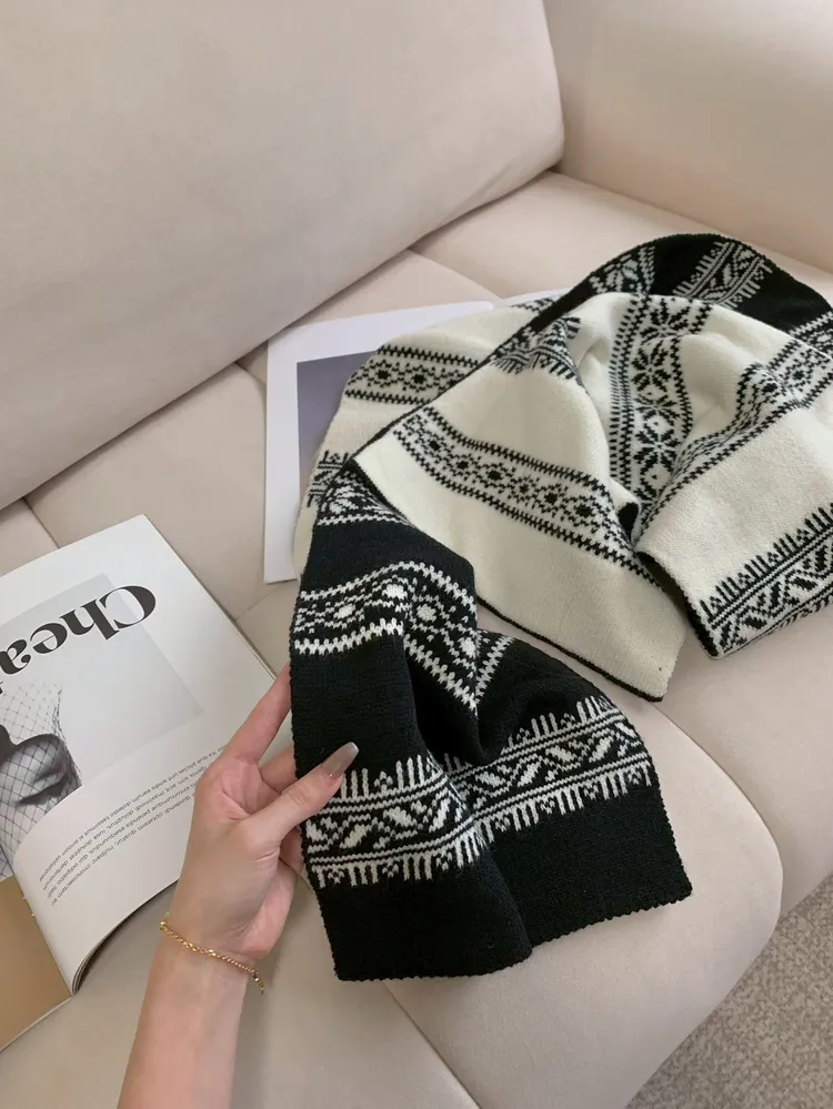 C157黑白雪花紋雙面彈針織圍巾
