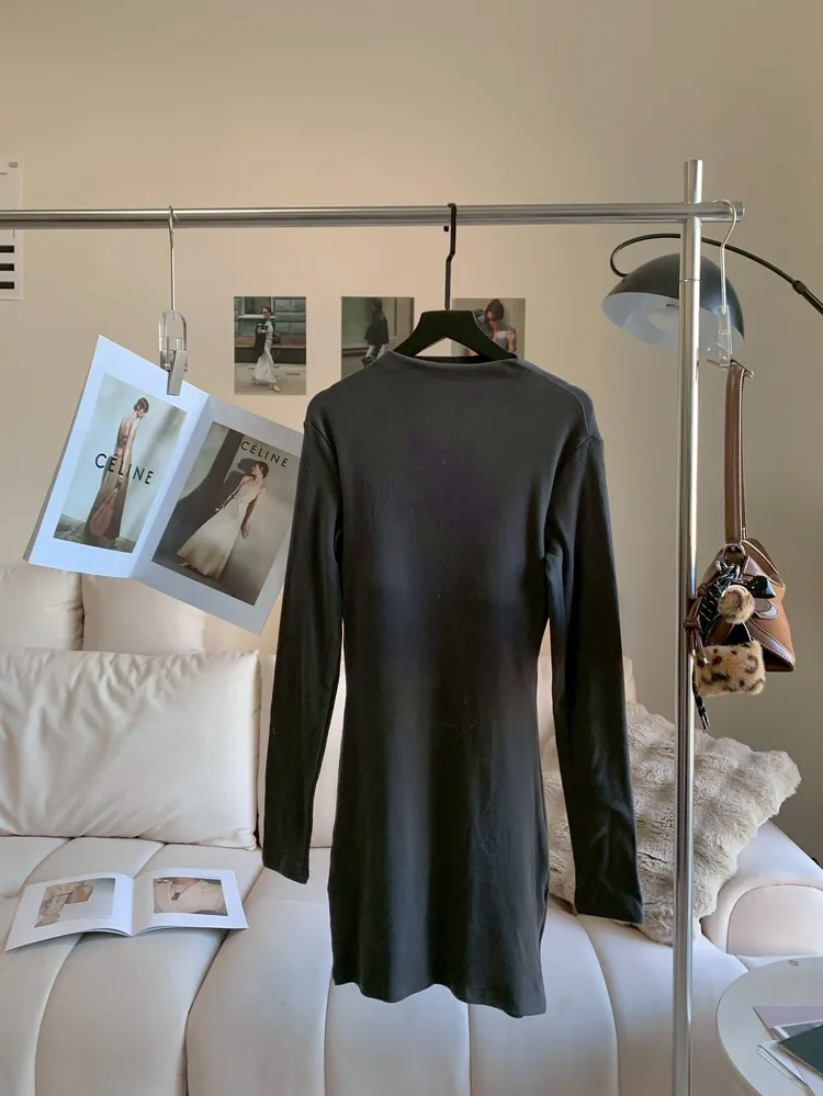 C175簡約微領胸墊磨毛連身裙