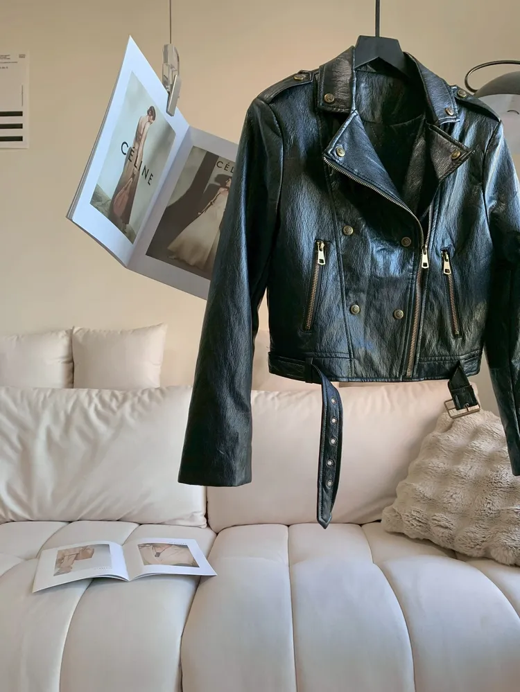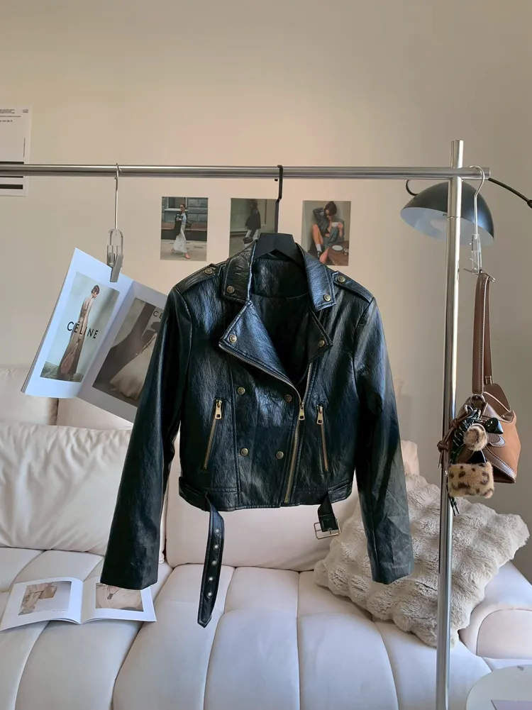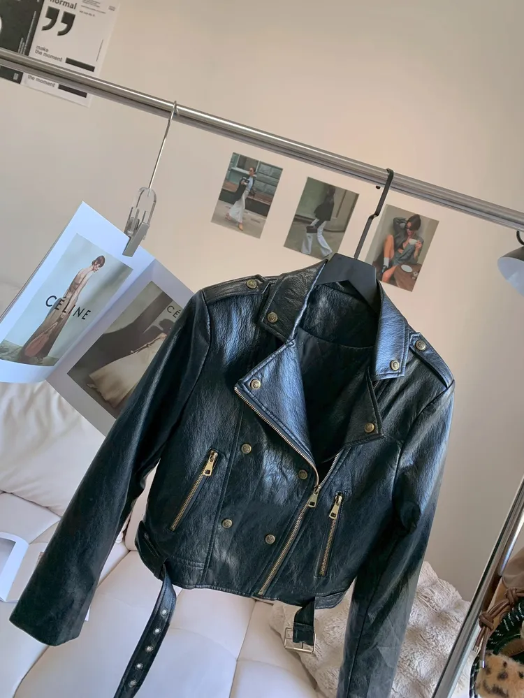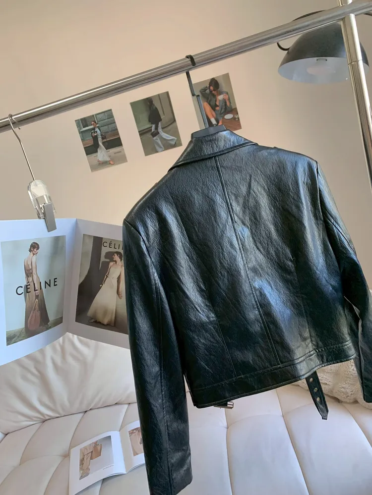 C176側拉鍊騎士柔軟皮外套