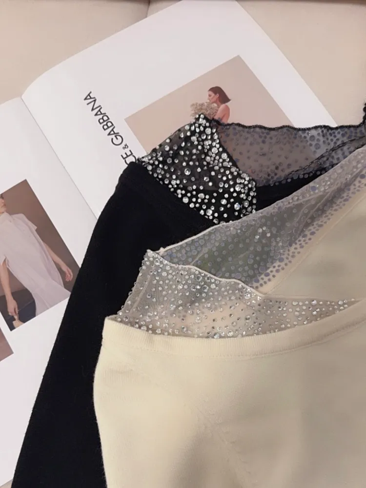 C209羊毛透視感V領燙鑽上衣