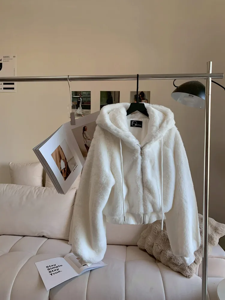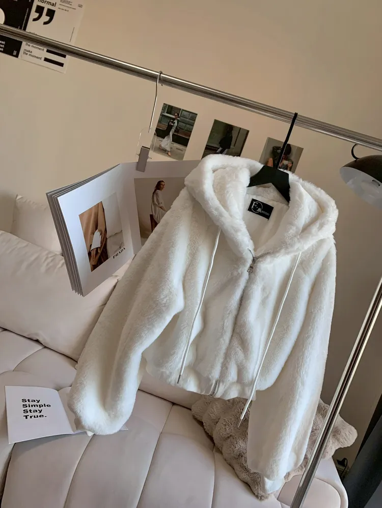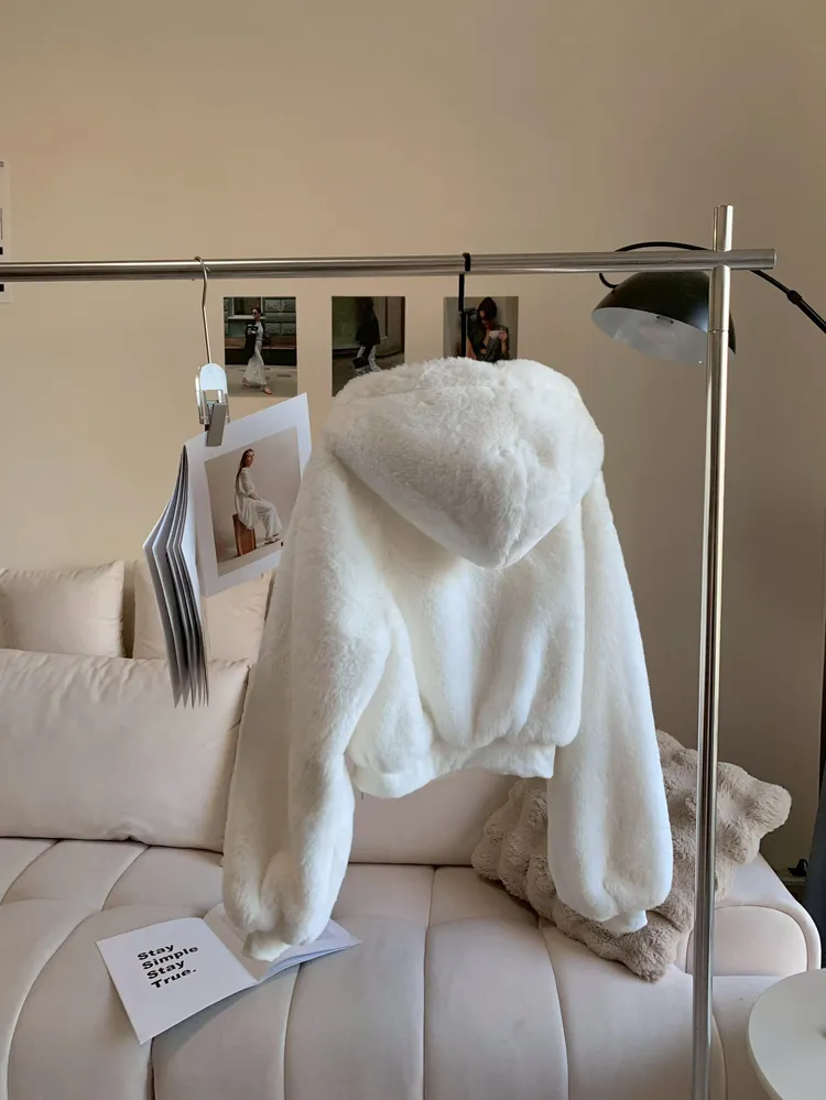 C234連帽柔軟毛絨短腰外套