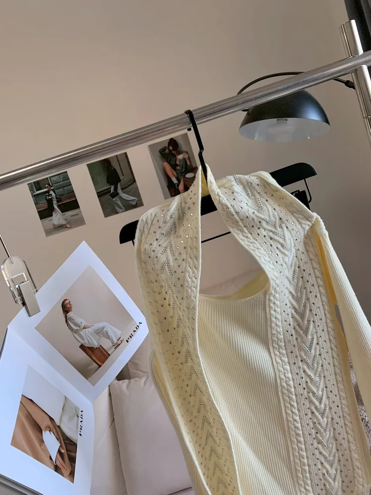 C235燙鑽短腰繞脖針織上衣