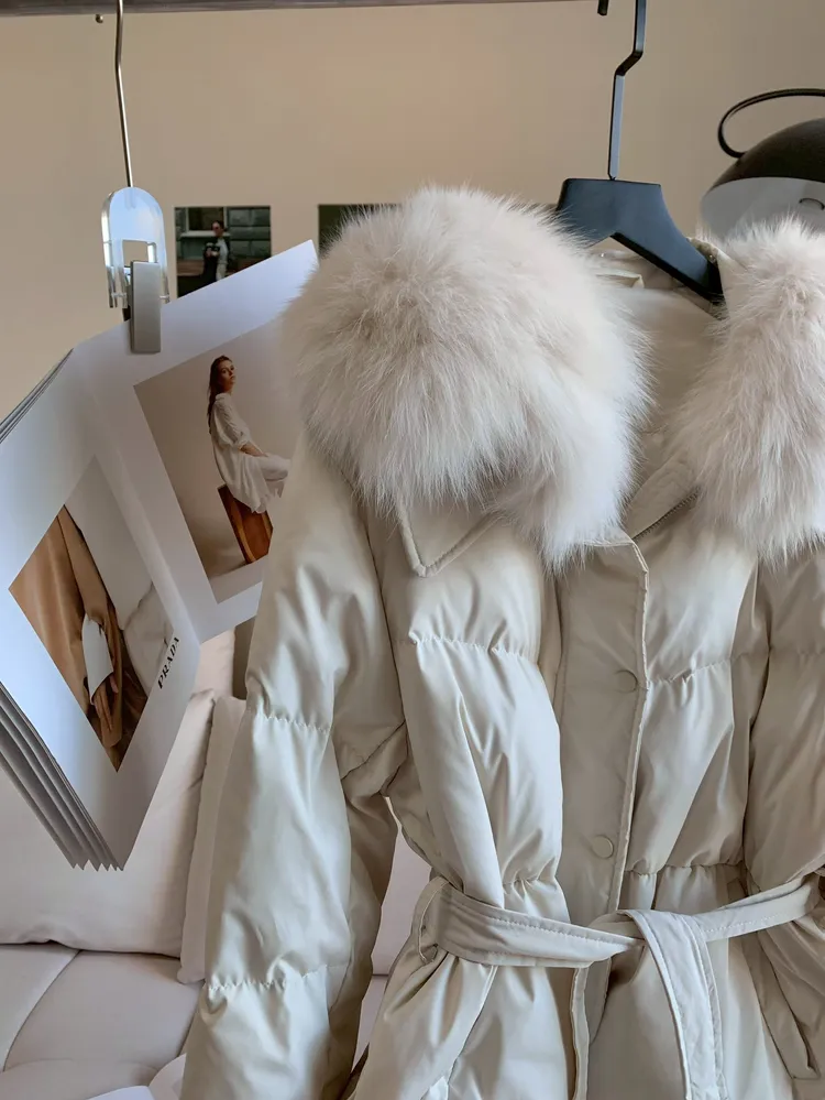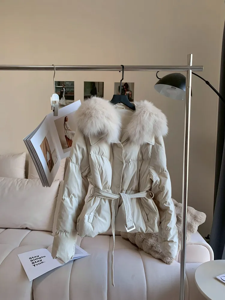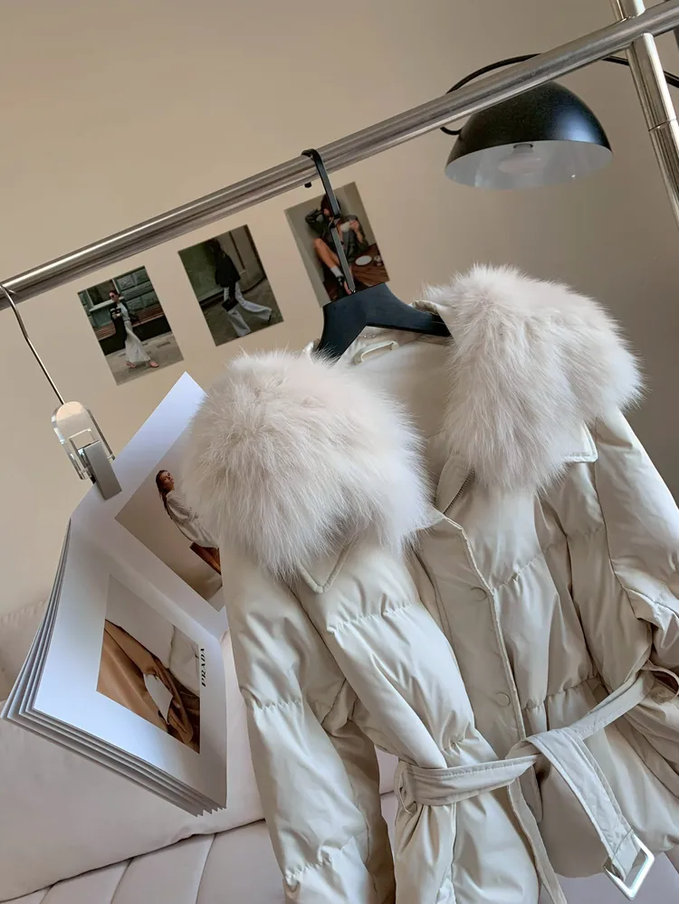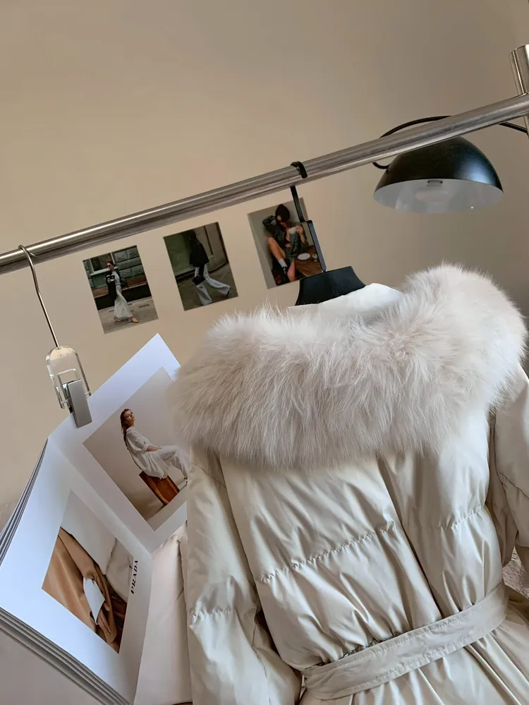 C239狐狸毛+白鴨絨90%領綁腰外套