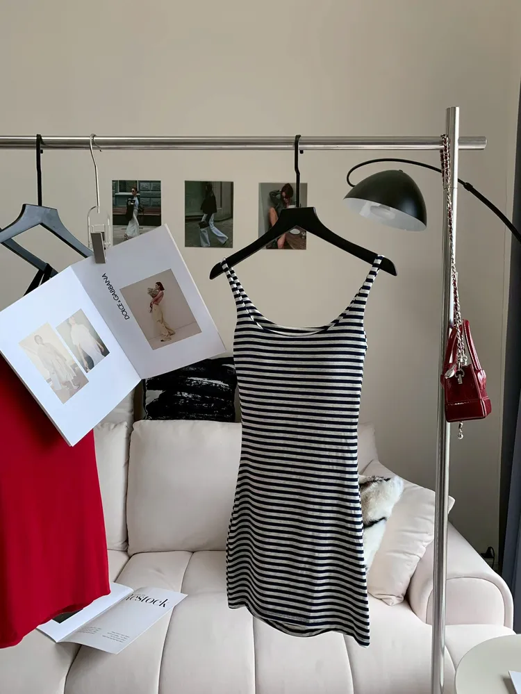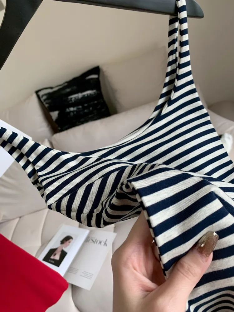 C314百搭條紋U字領BEA背心裙
