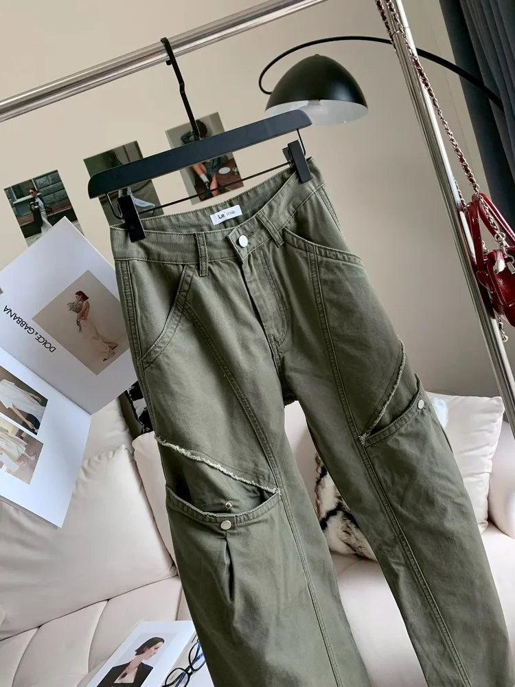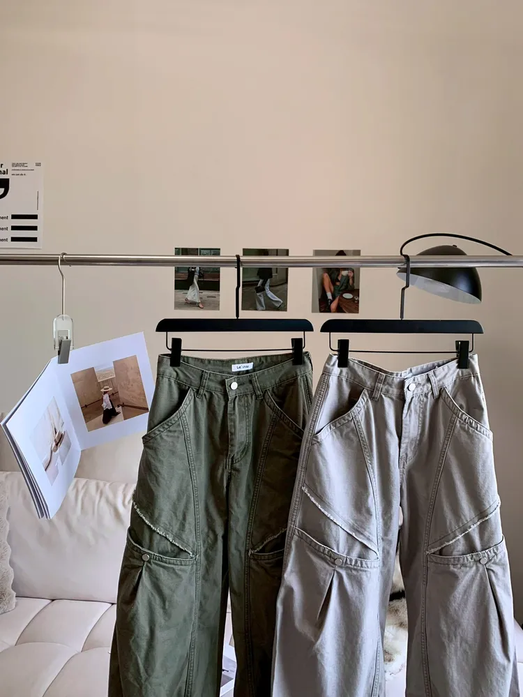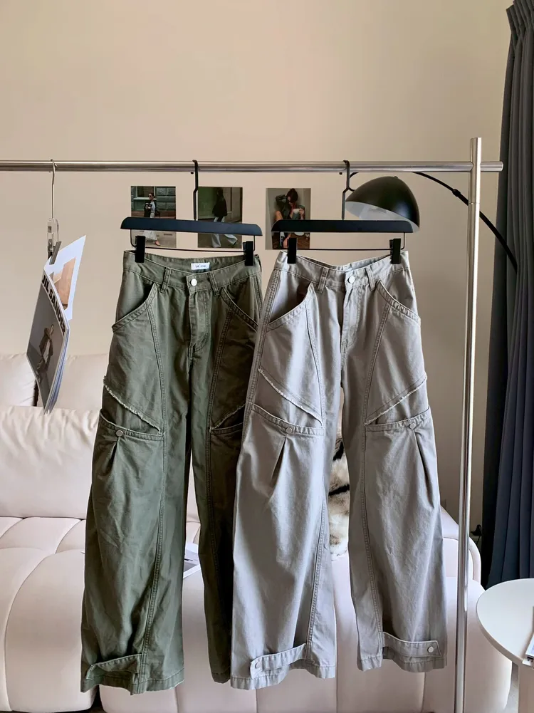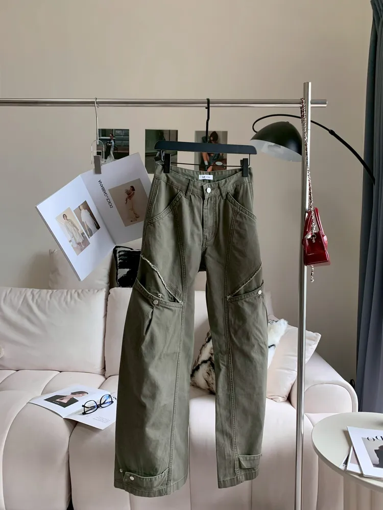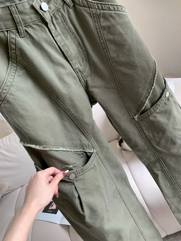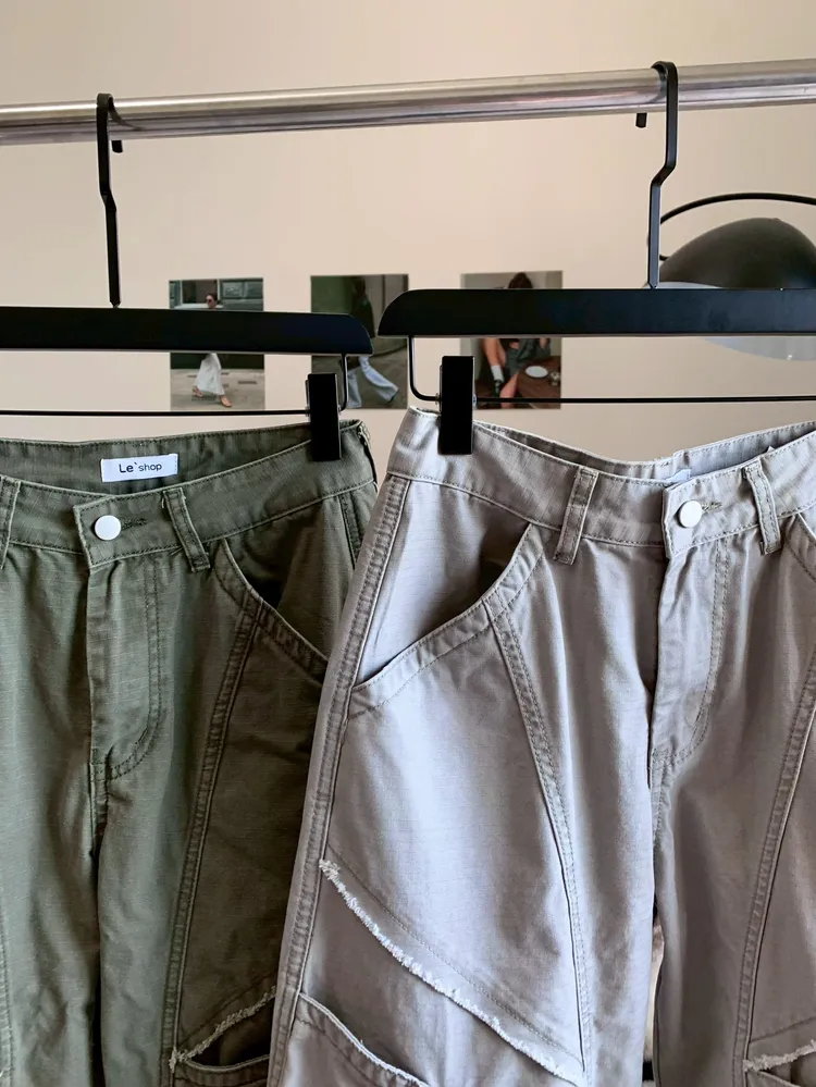 C322好評加色♡斜口袋設計釘釦工裝褲