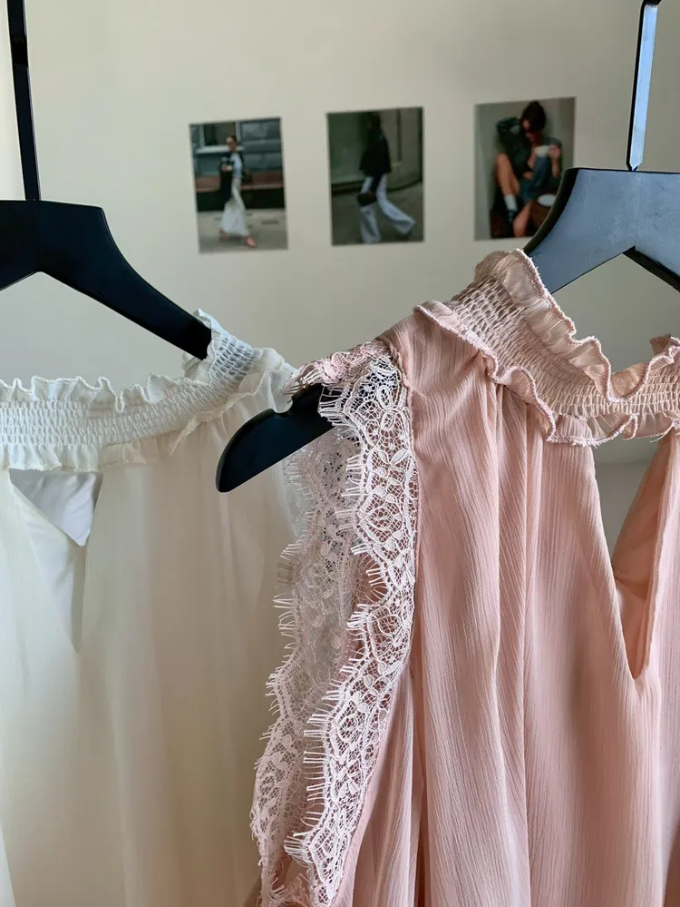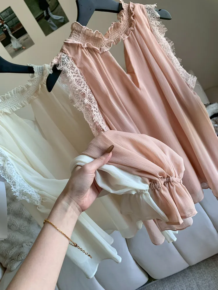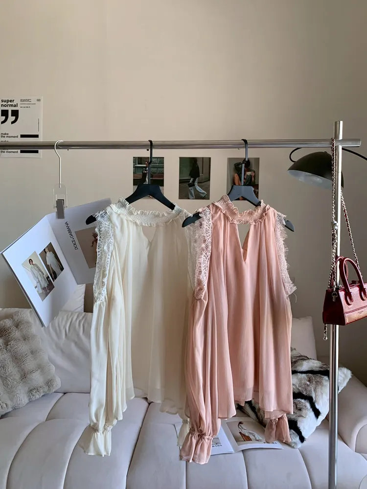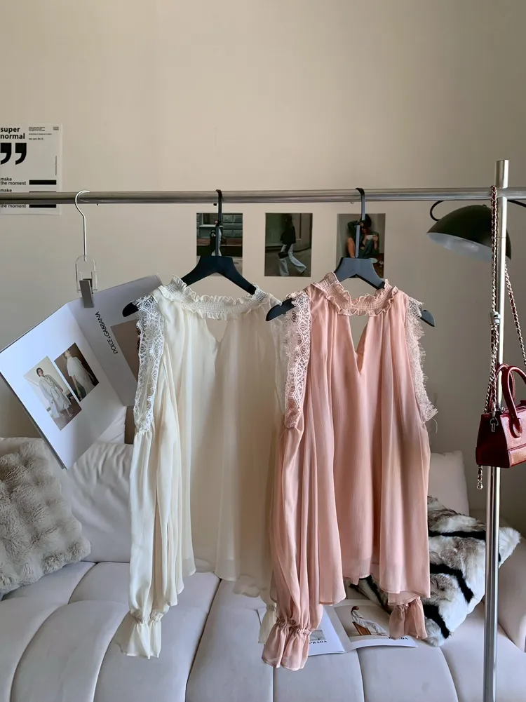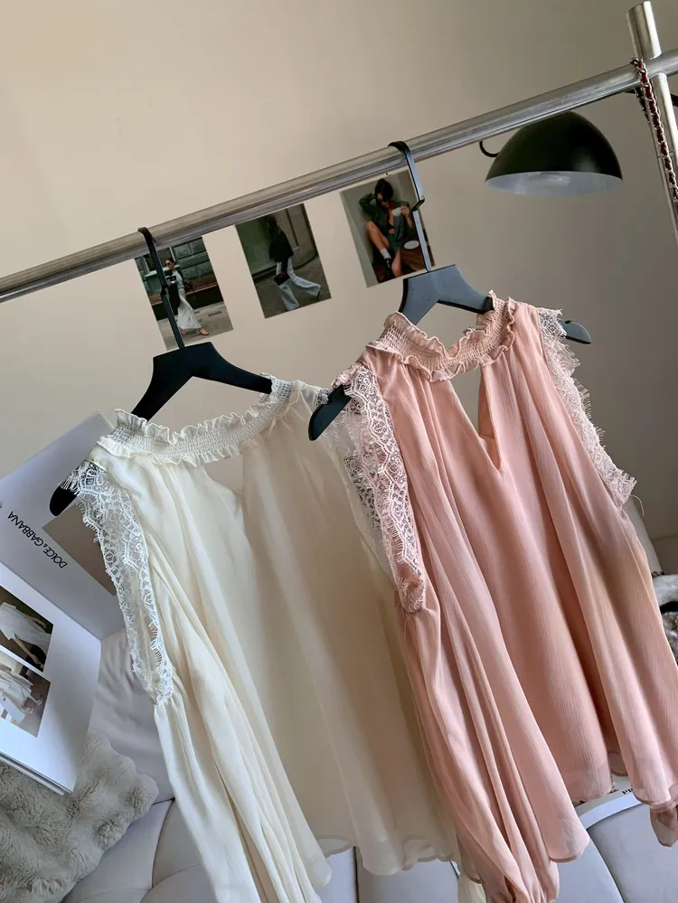 C337簍空領蕾絲雪紡上衣