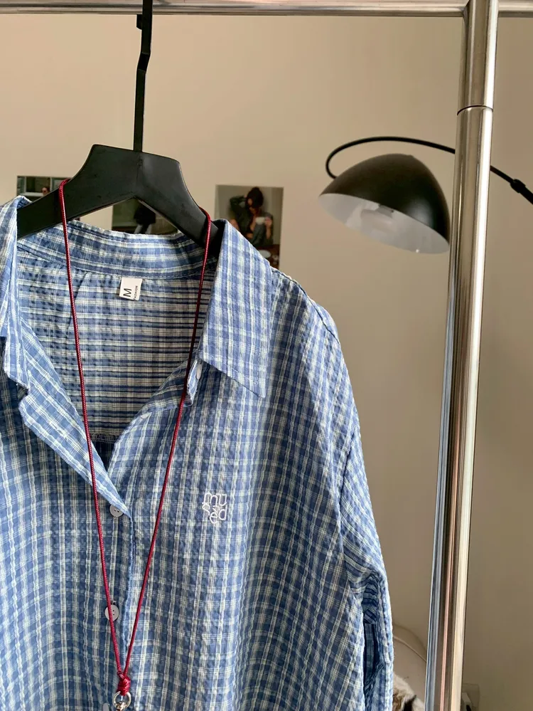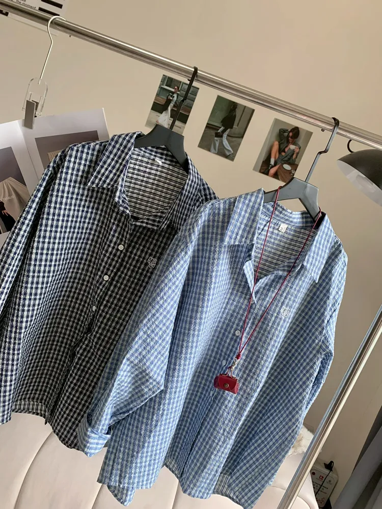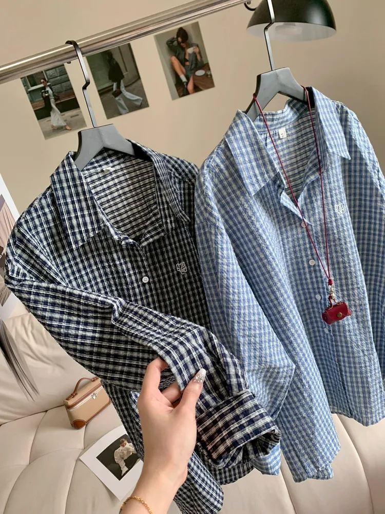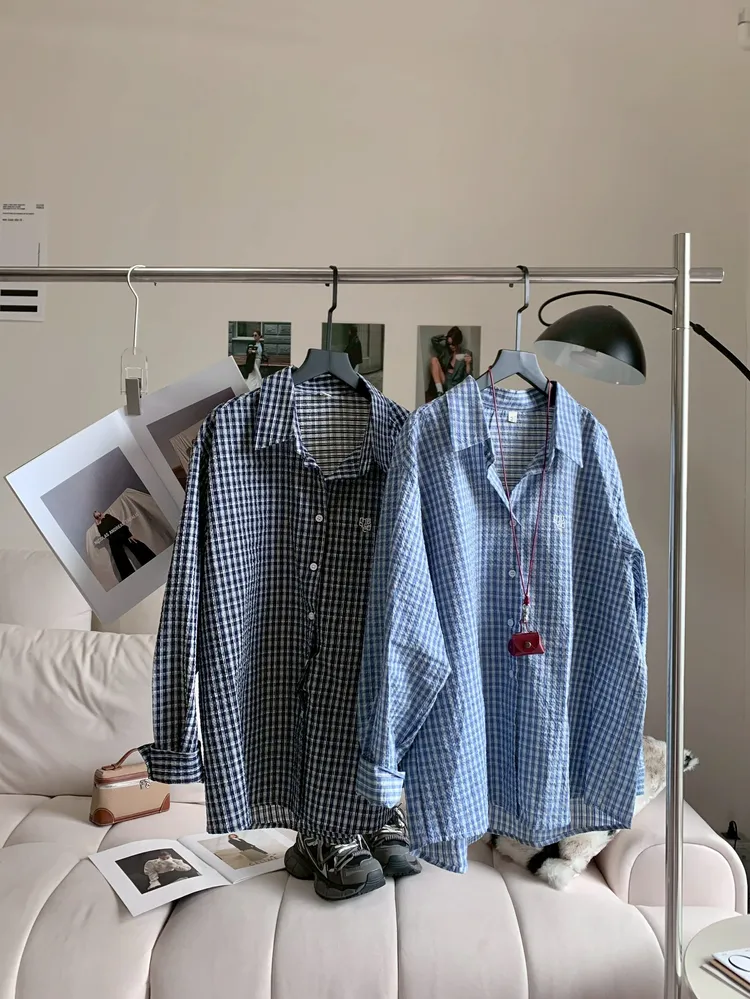 C345立體刺繡肌理格紋襯衫