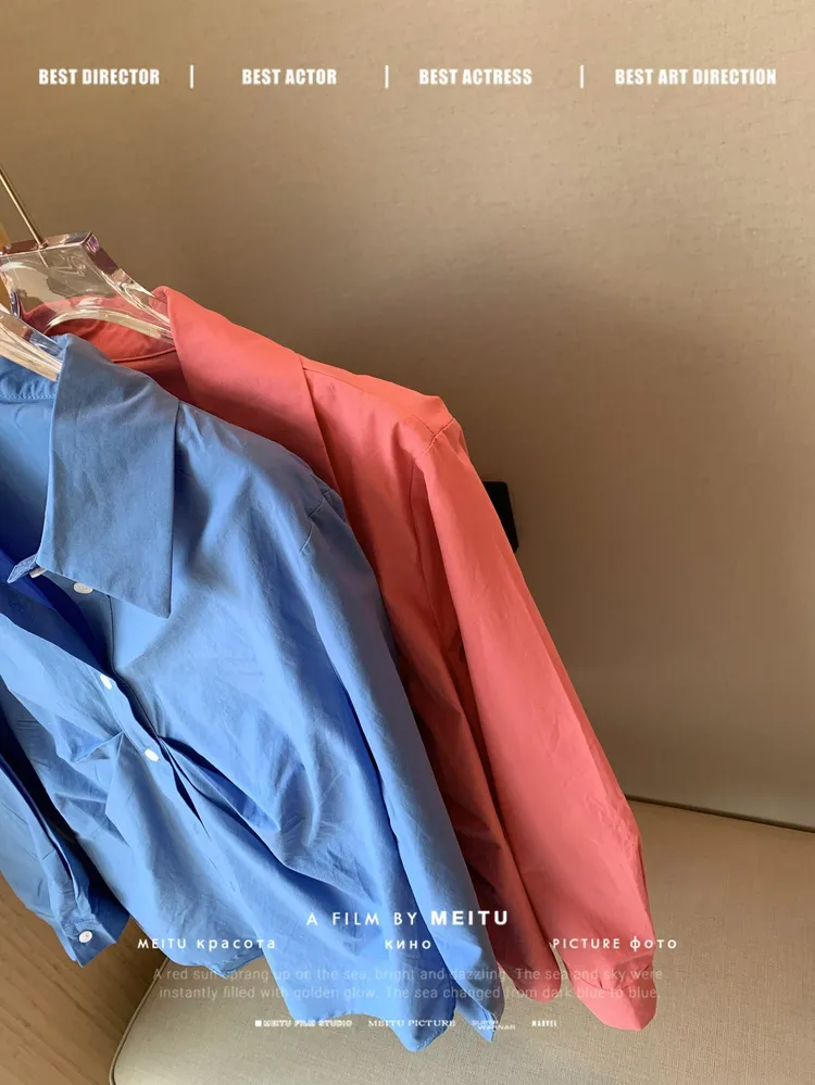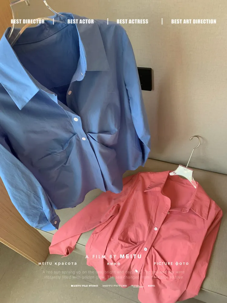 C350韓系抓褶收腰襯衫