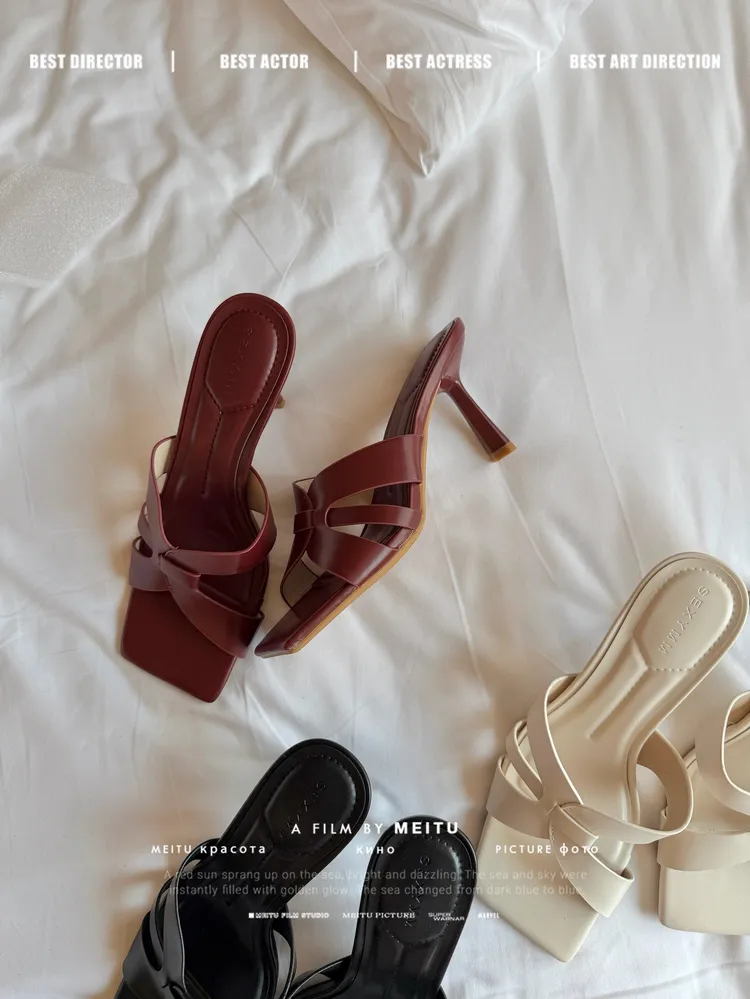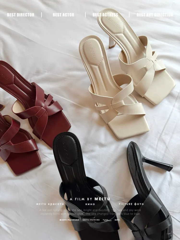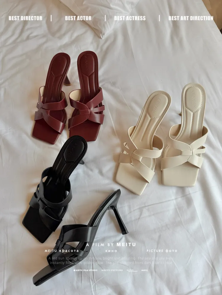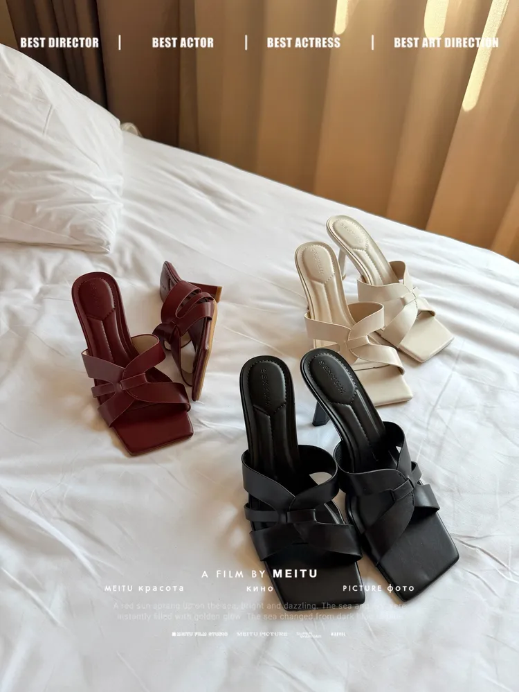 C360簍空方頭細跟涼拖鞋