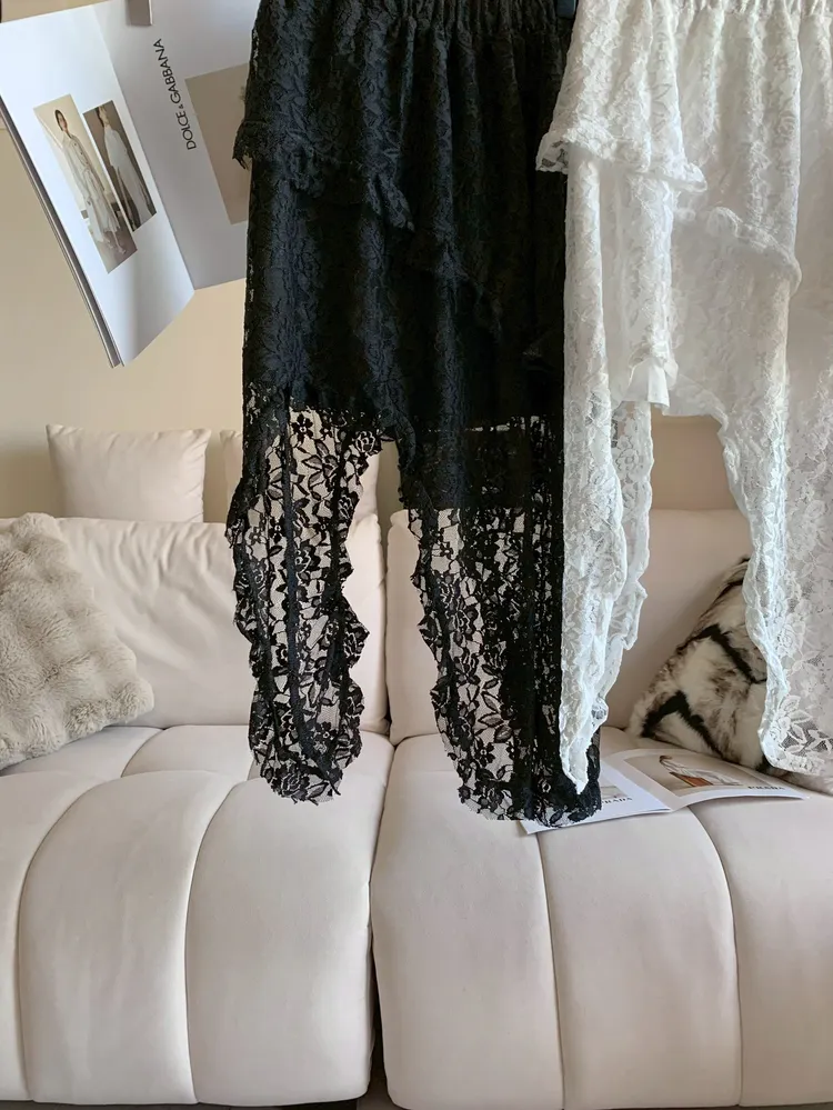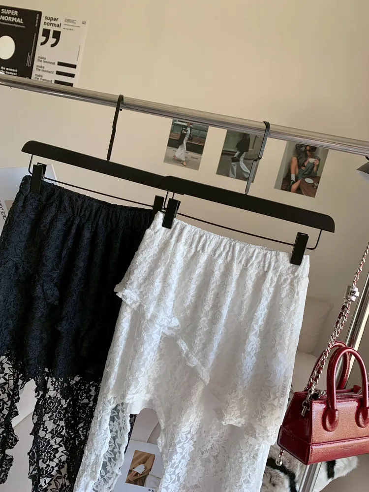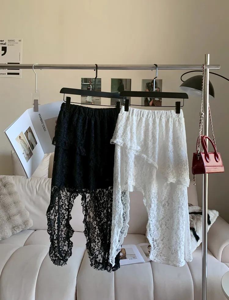 C361不規則緹花蕾絲彈性半裙