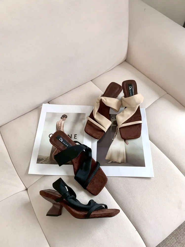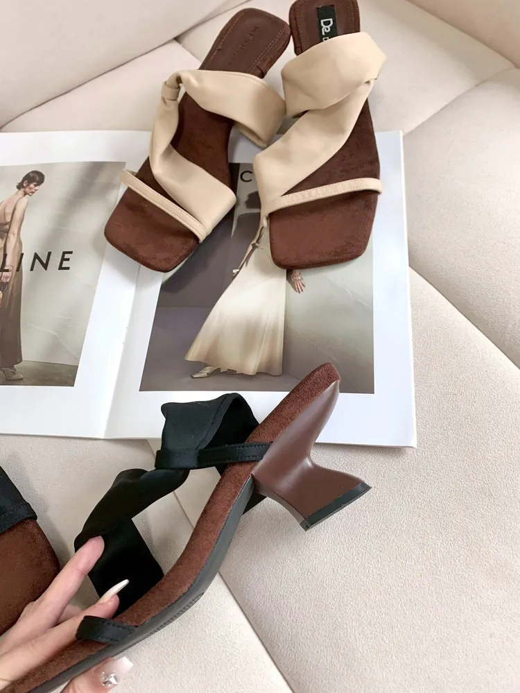 C368麂皮絨面舒適坡跟涼拖鞋
