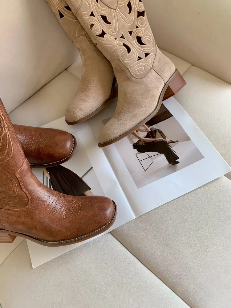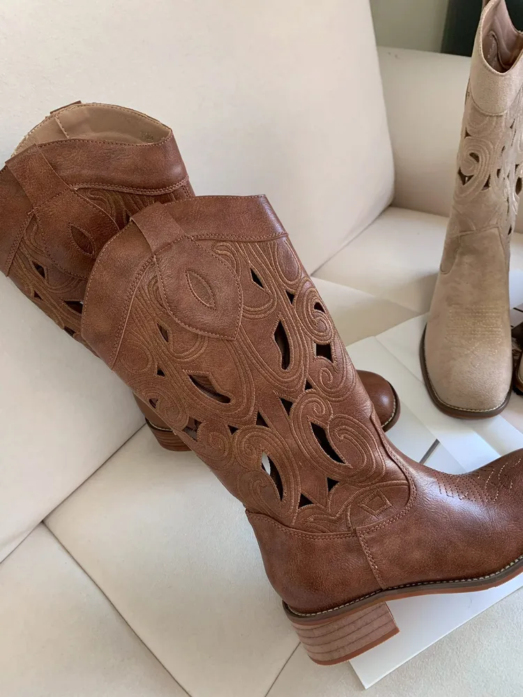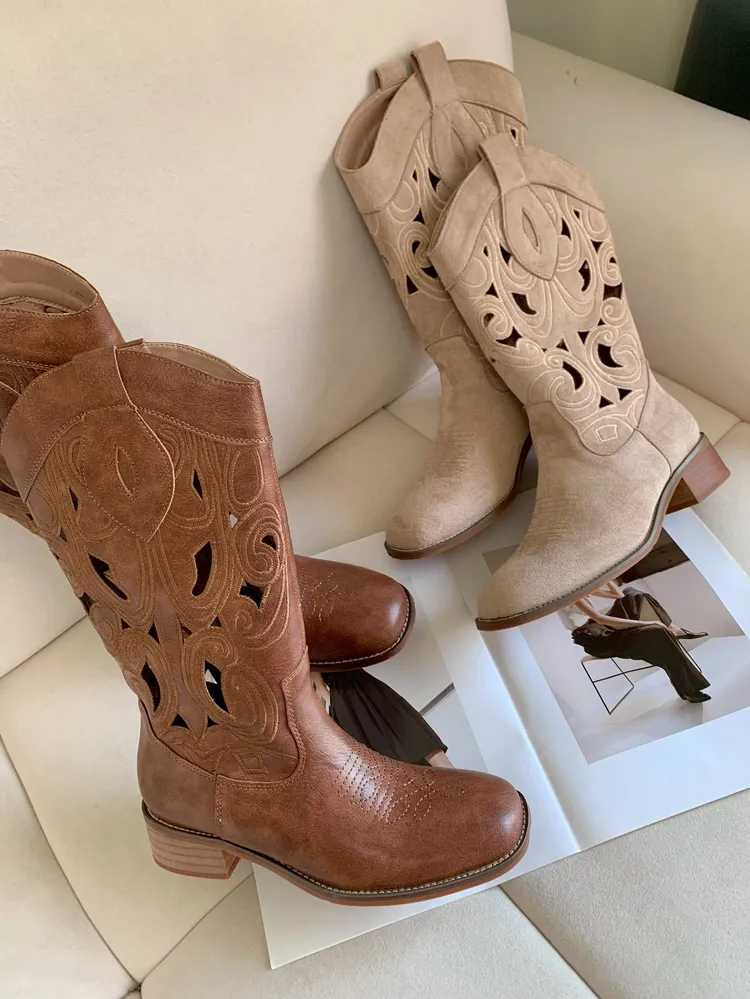 C3710春夏簍空雕花皮革靴