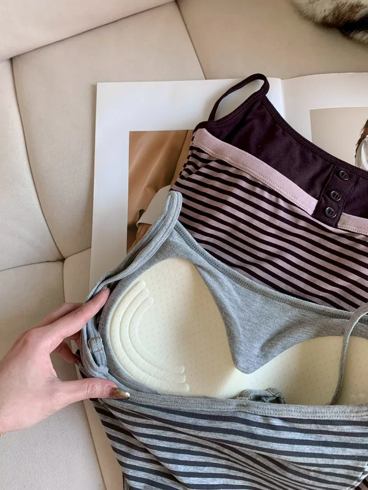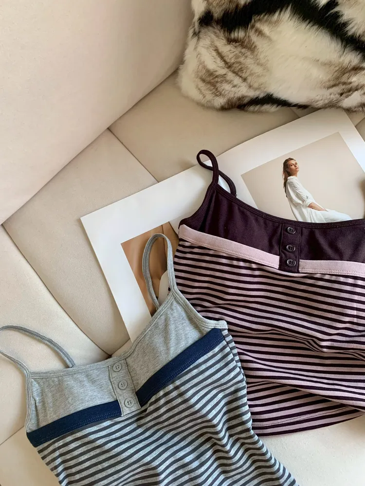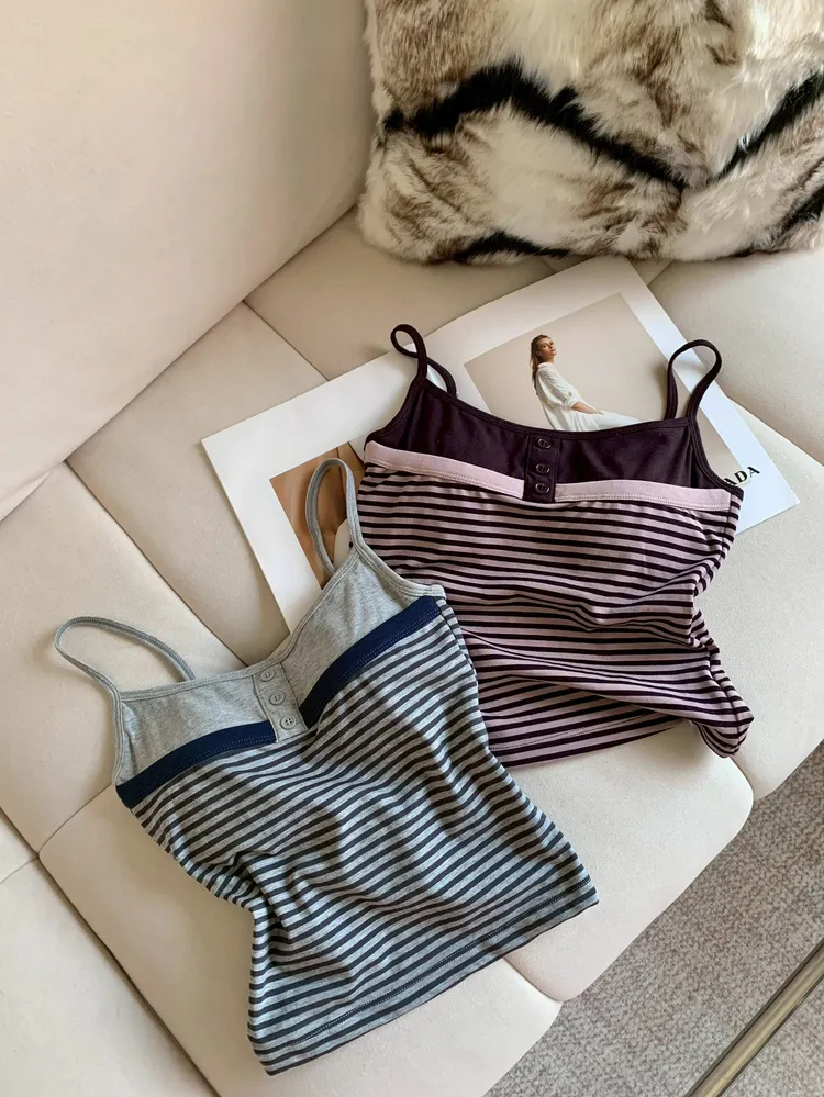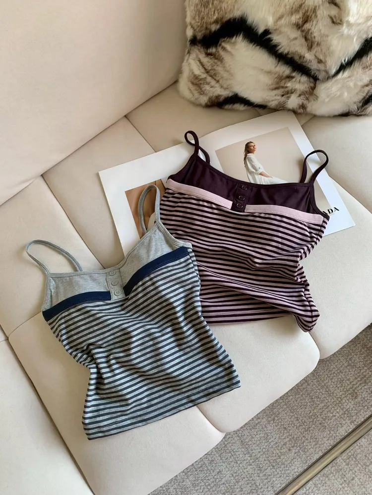 C375細肩排釦撞色條紋BRA背心