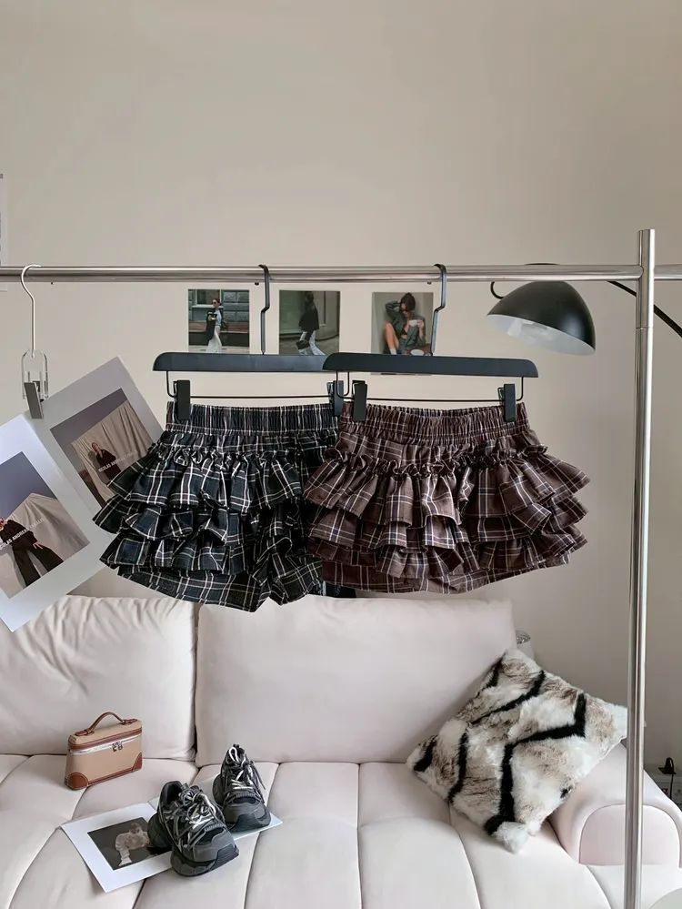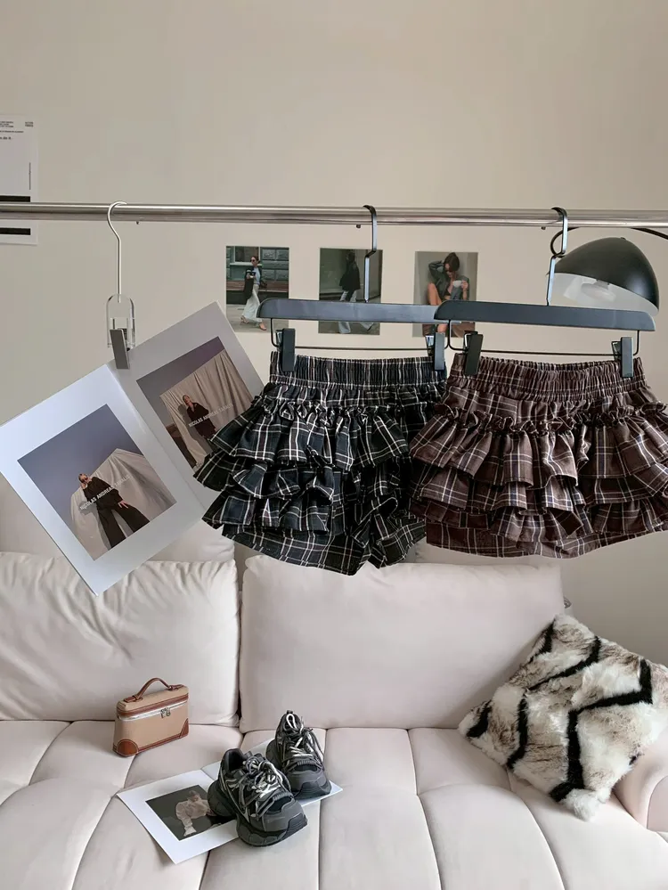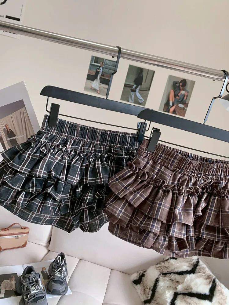 C391格紋層次蛋糕短褲裙