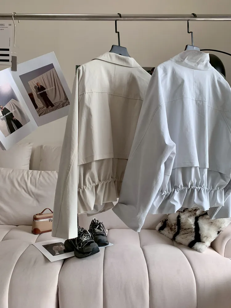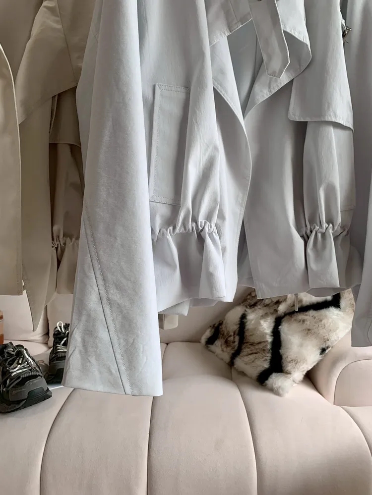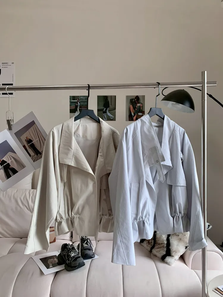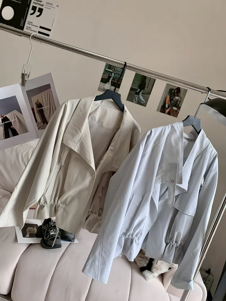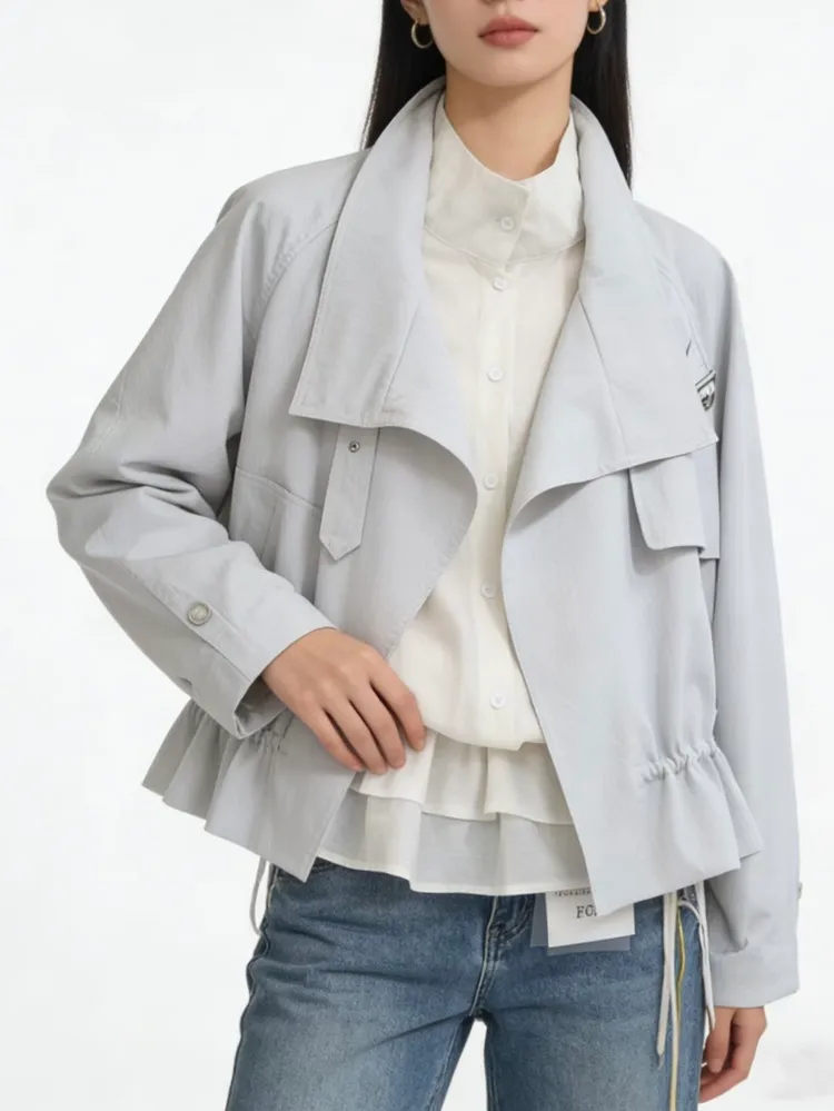 C398高級感翻領抽繩風衣外套