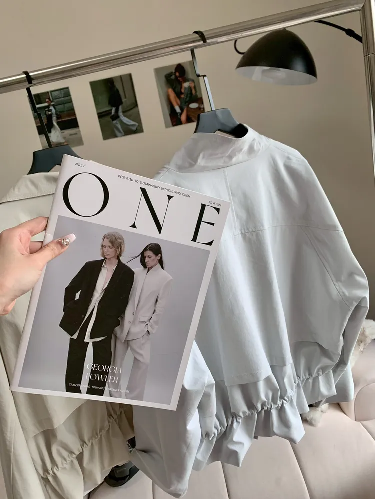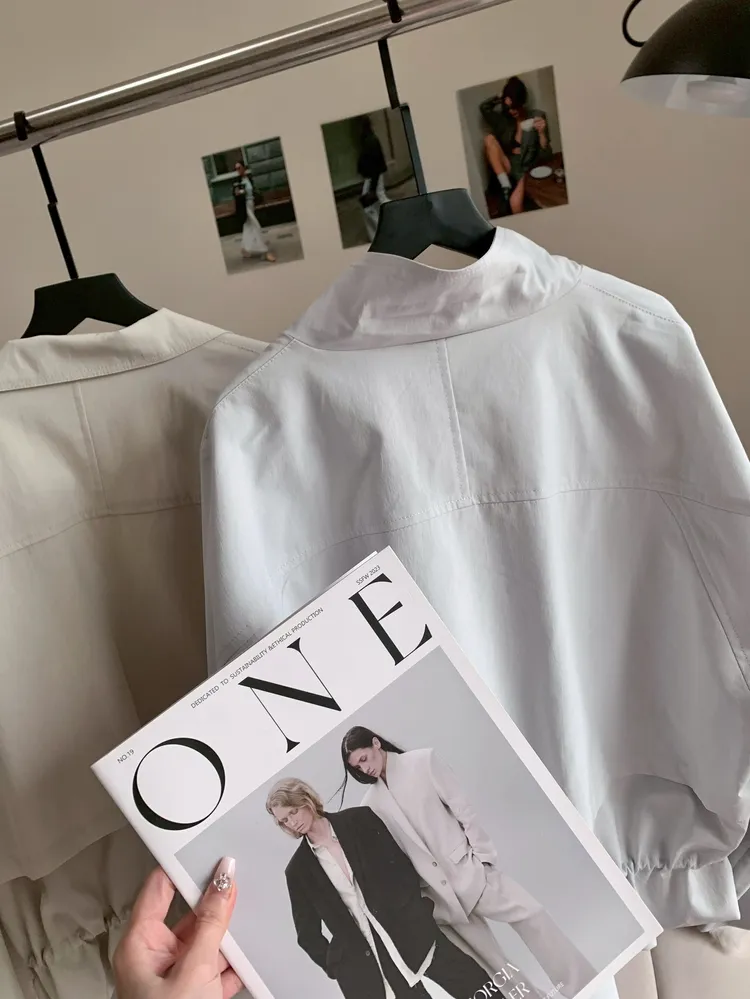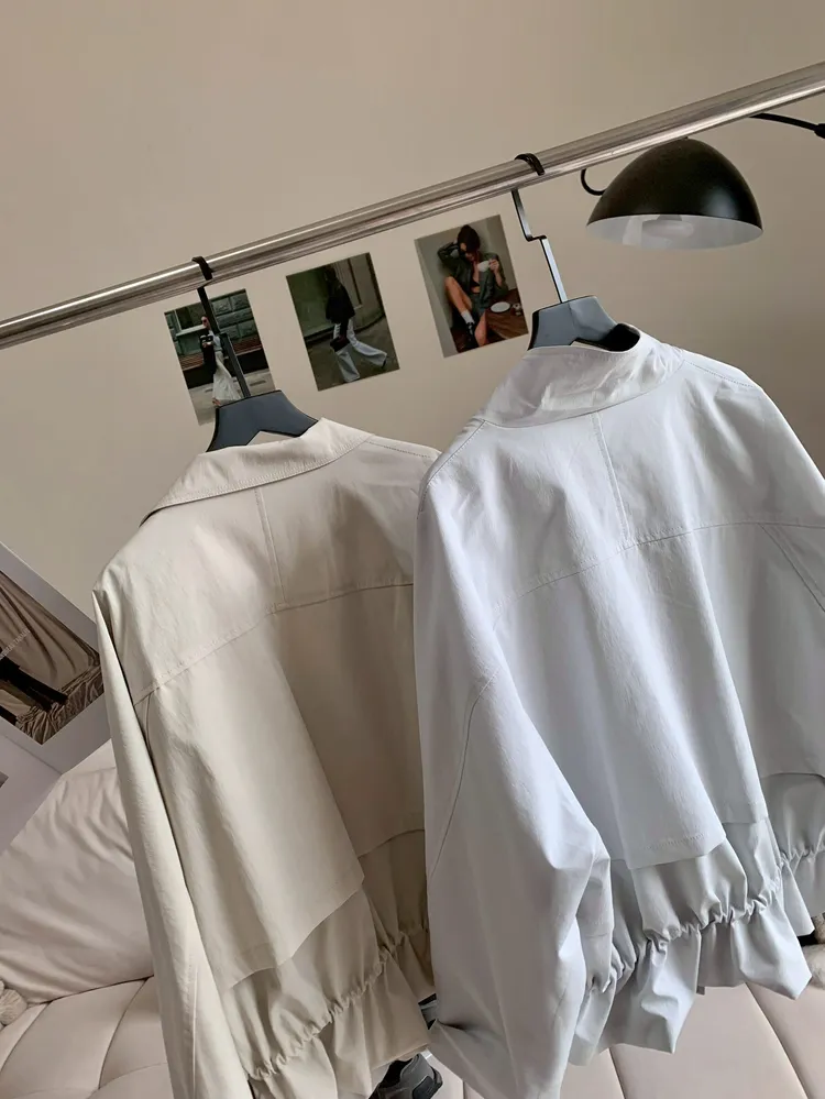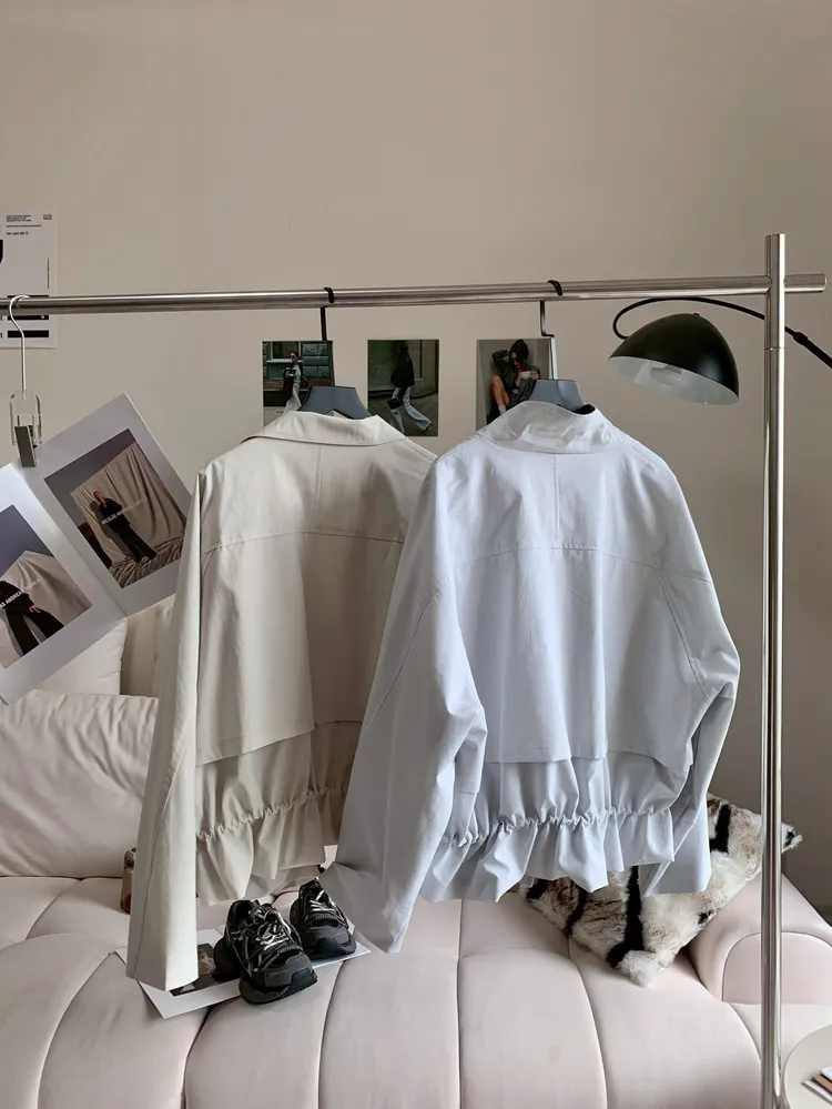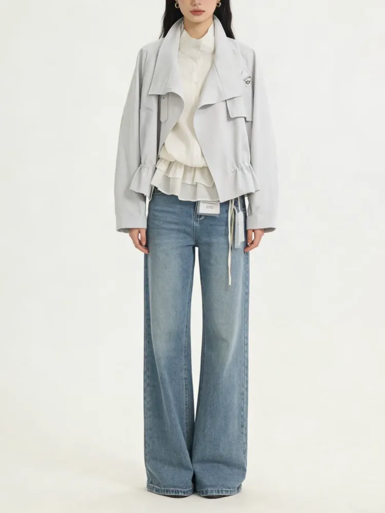 C398高級感翻領抽繩風衣外套
