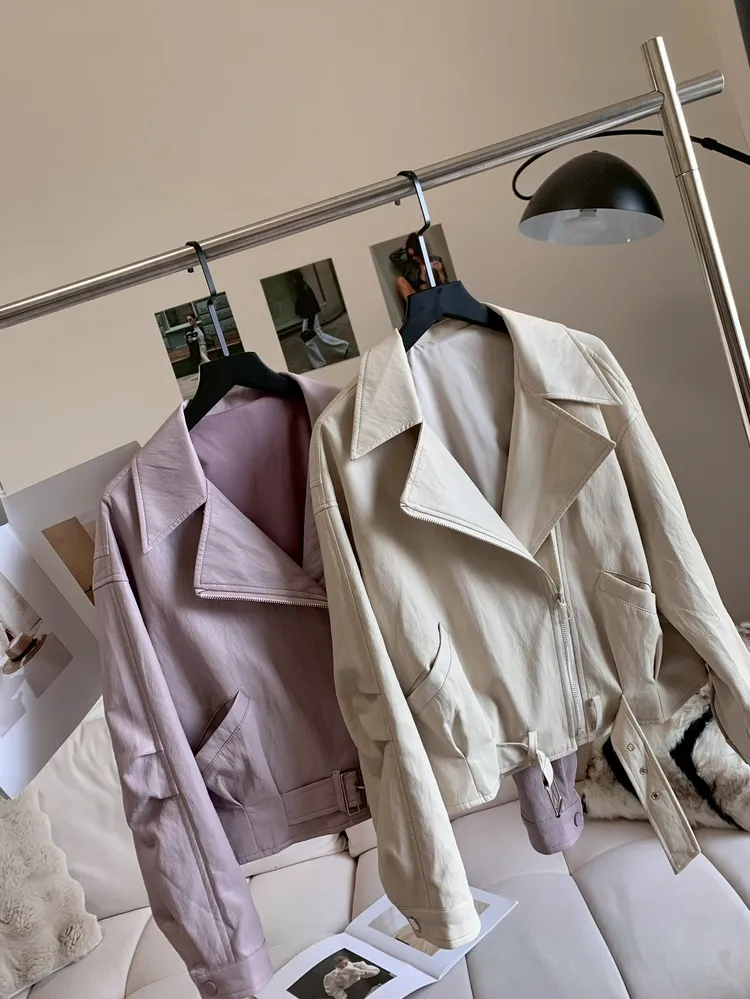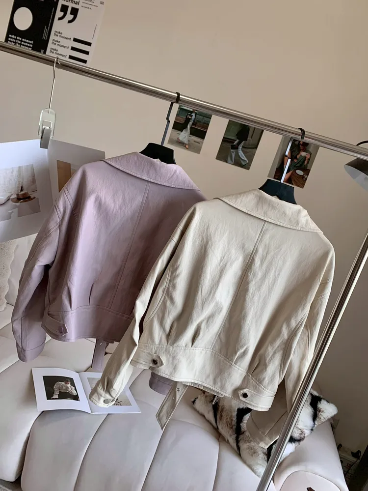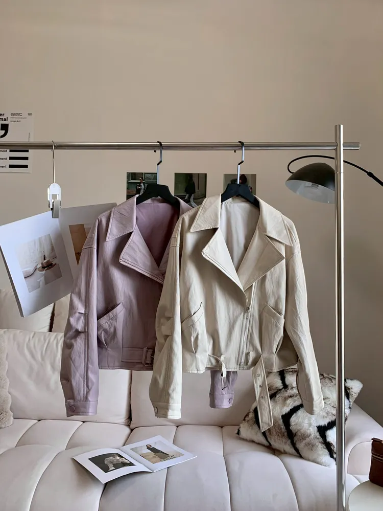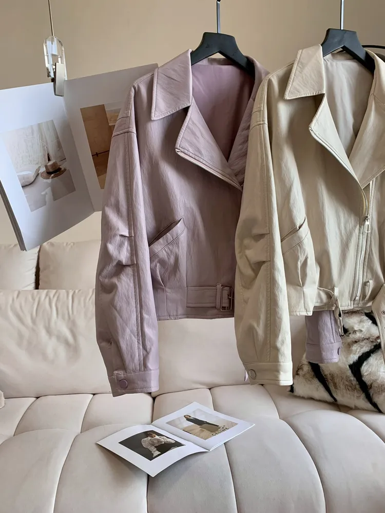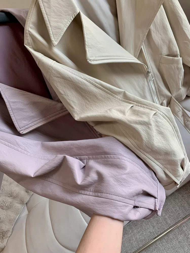 C405落肩收腰質感皮外套