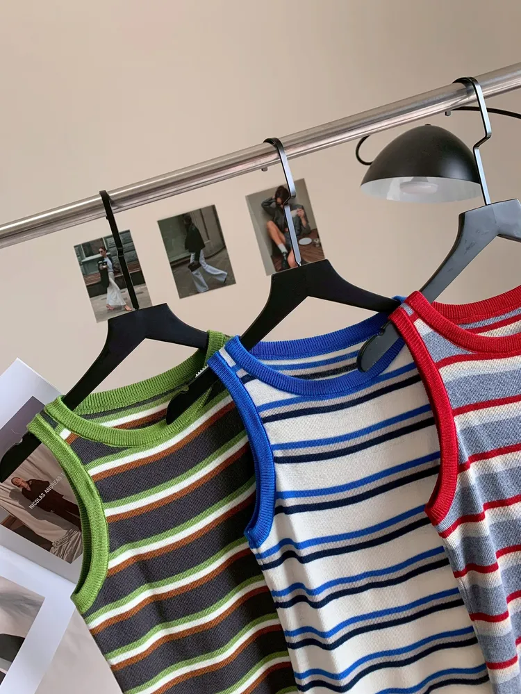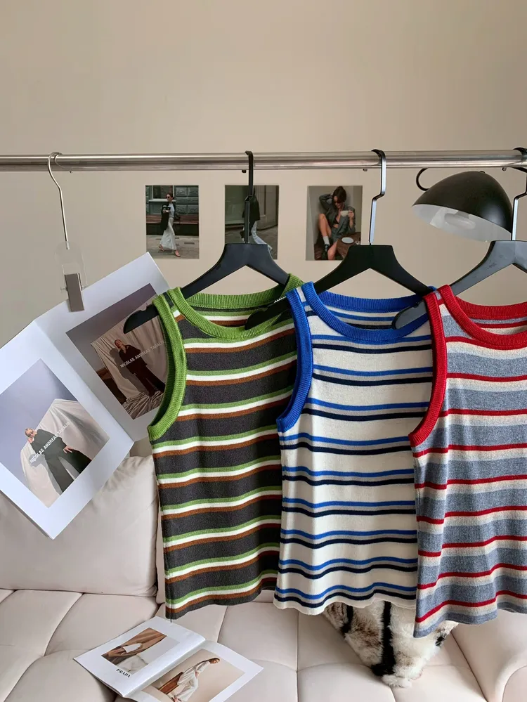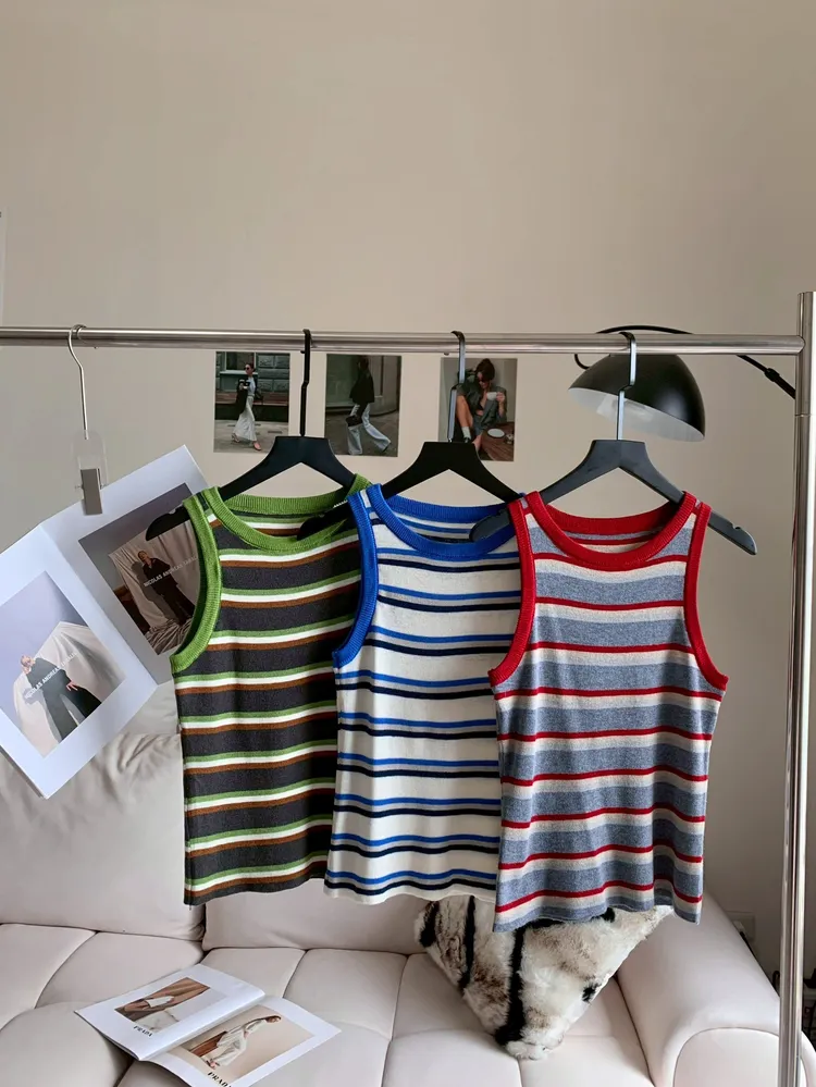 C423撞色圓領條紋滾邊背心