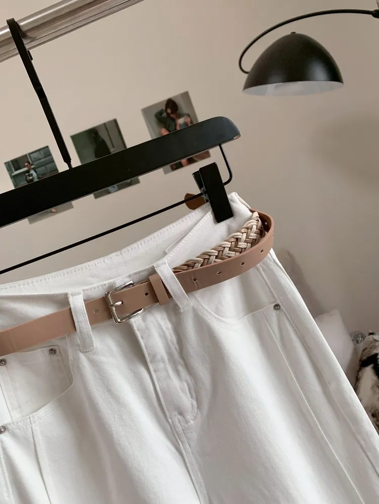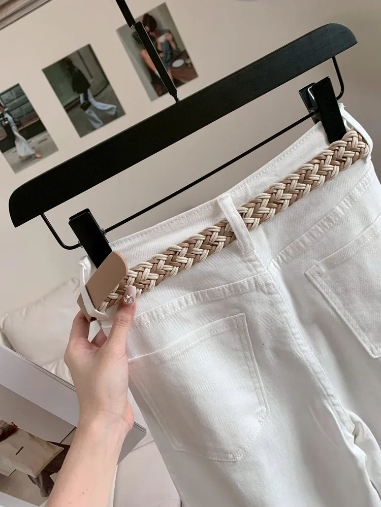 C453編織皮革腰帶質感九分褲