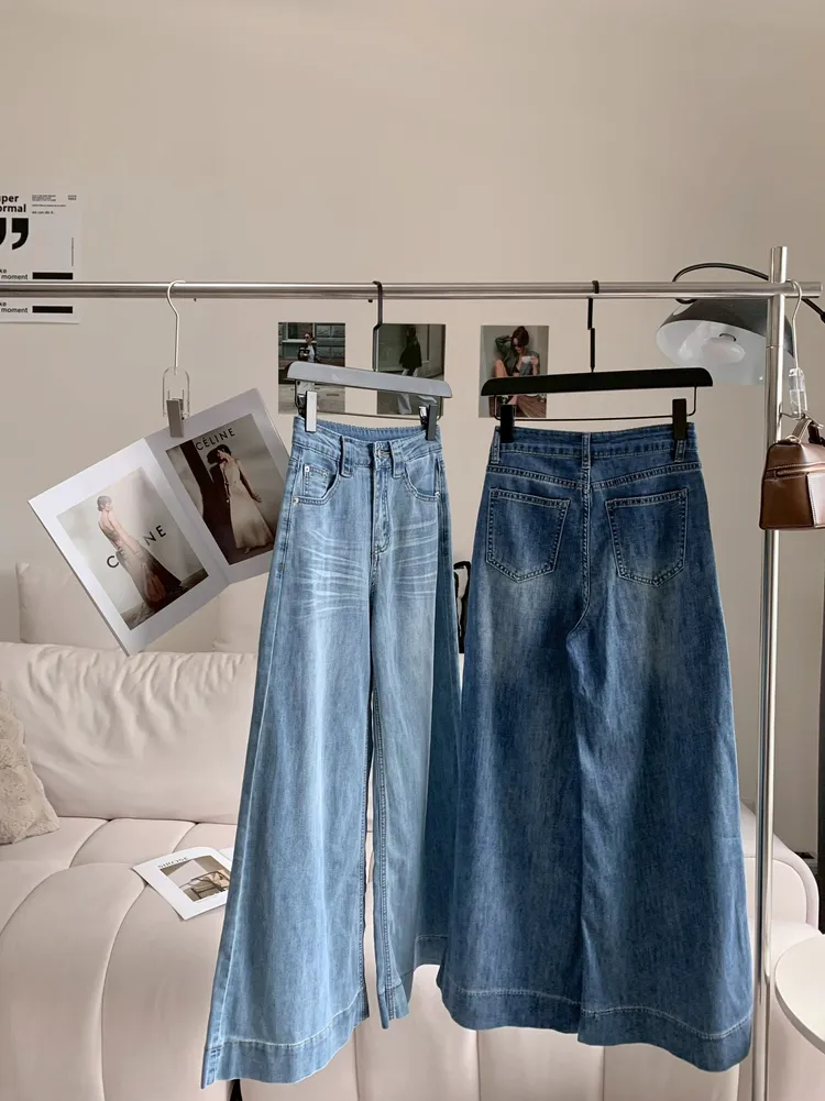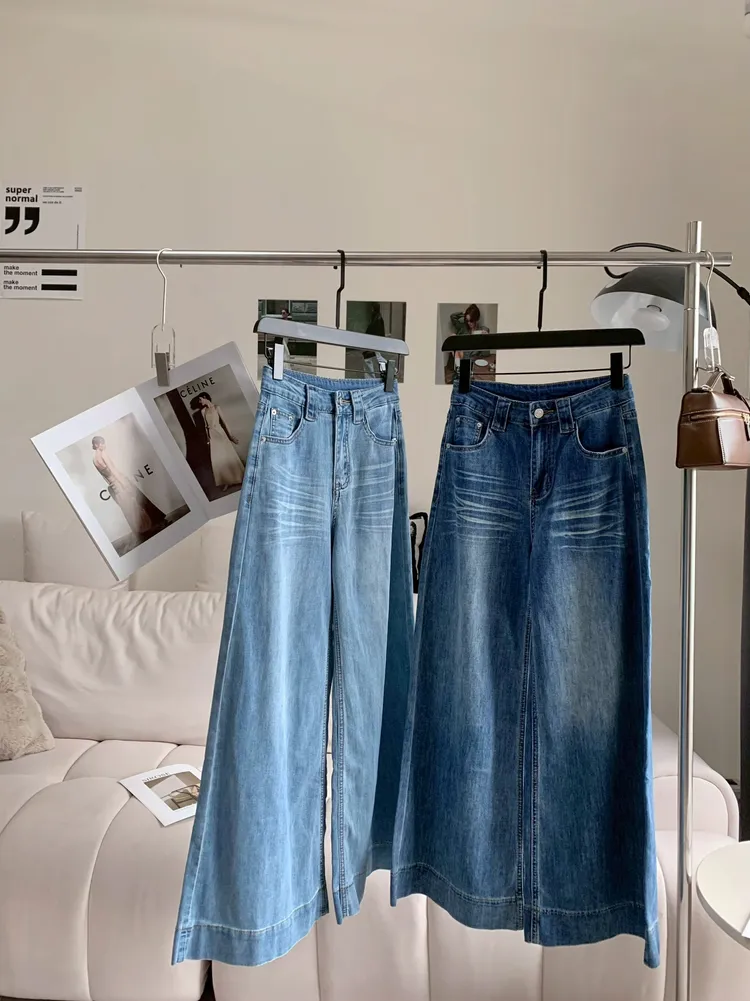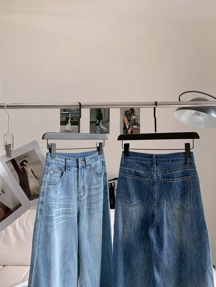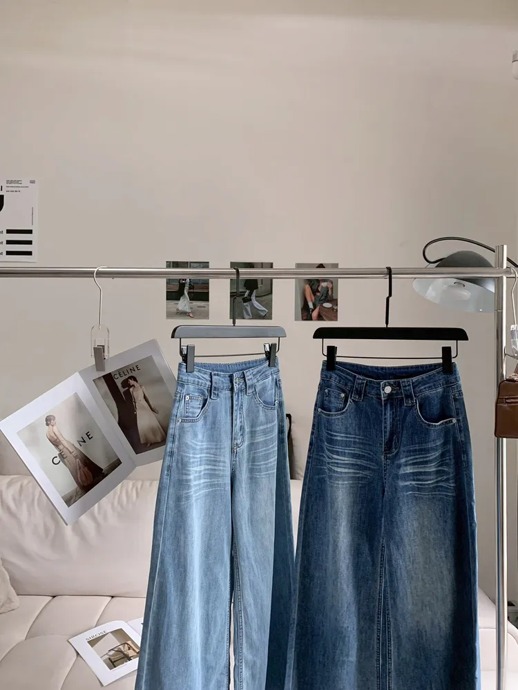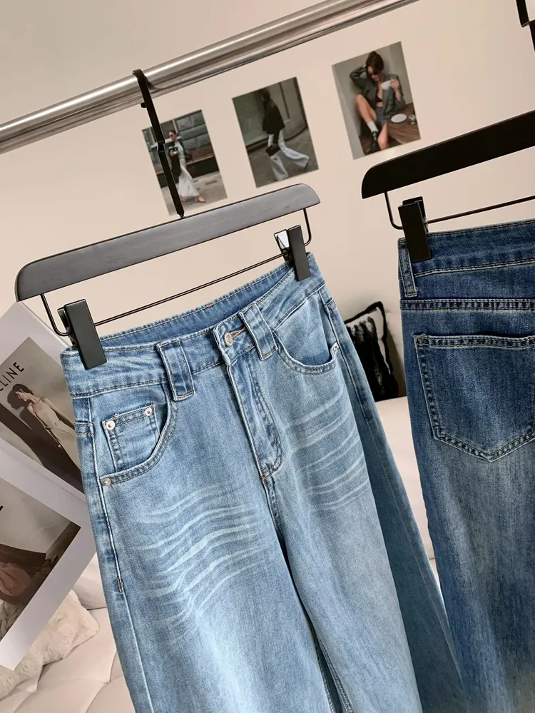 C477高腰貓鬚紋彈性筒喇褲