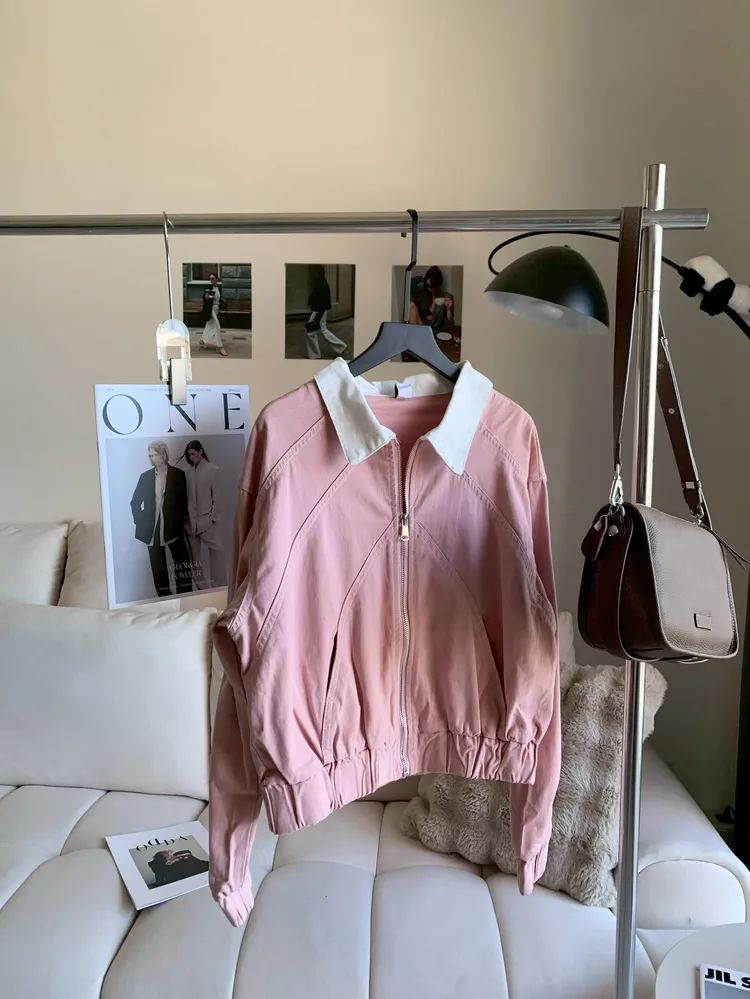 T104粉色撞領夾克外套