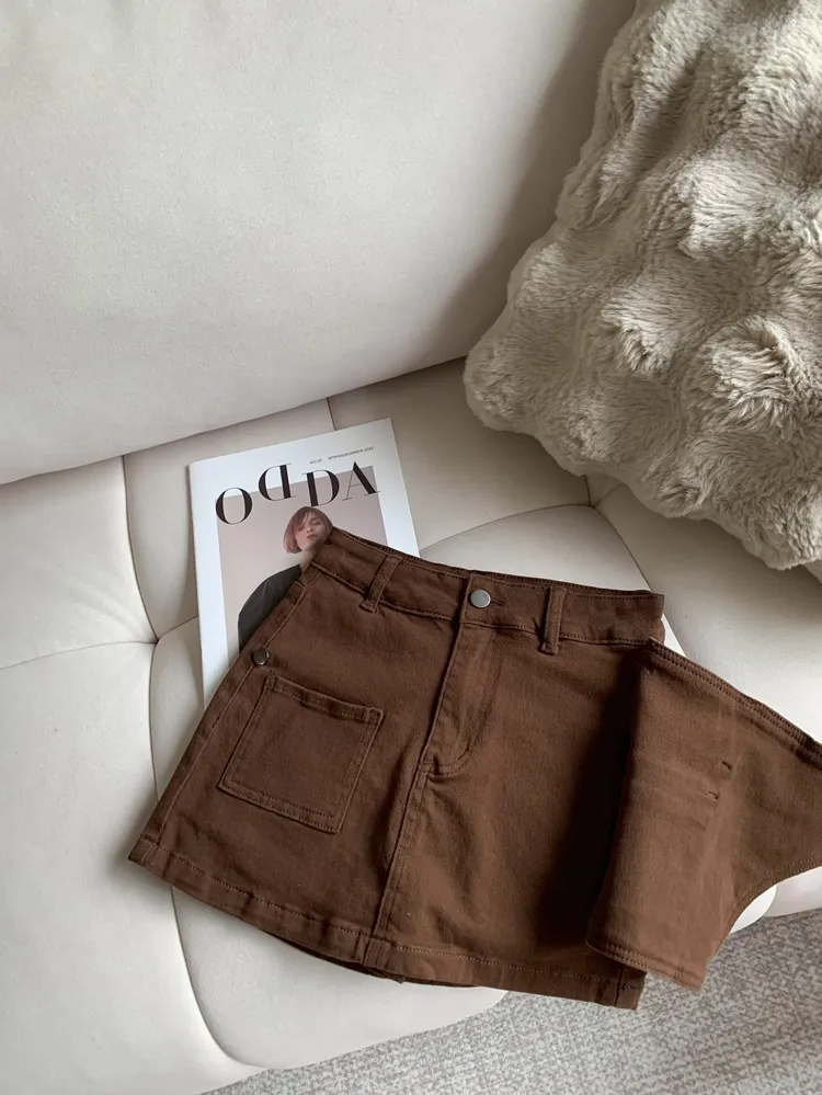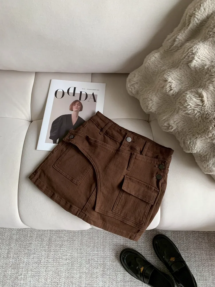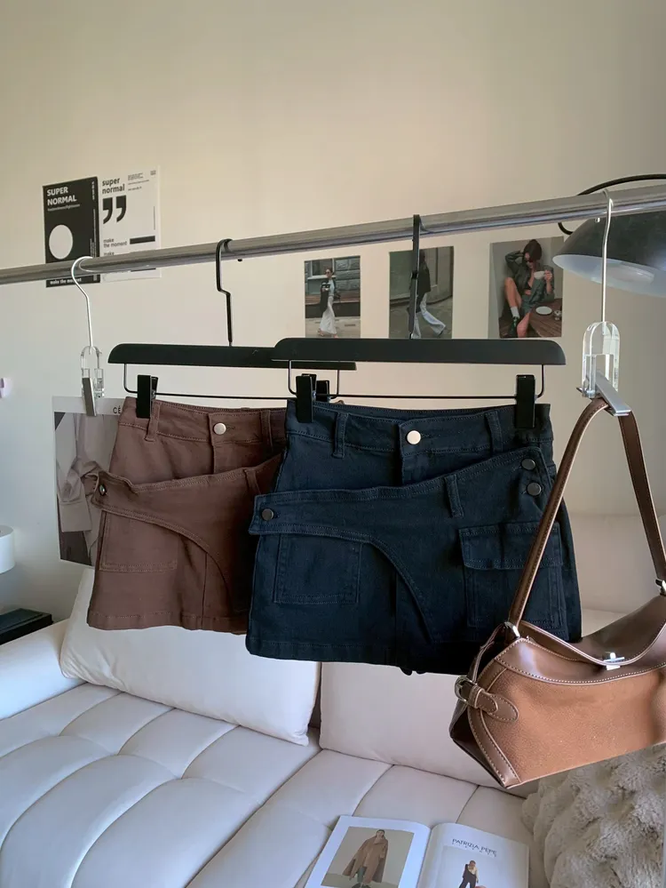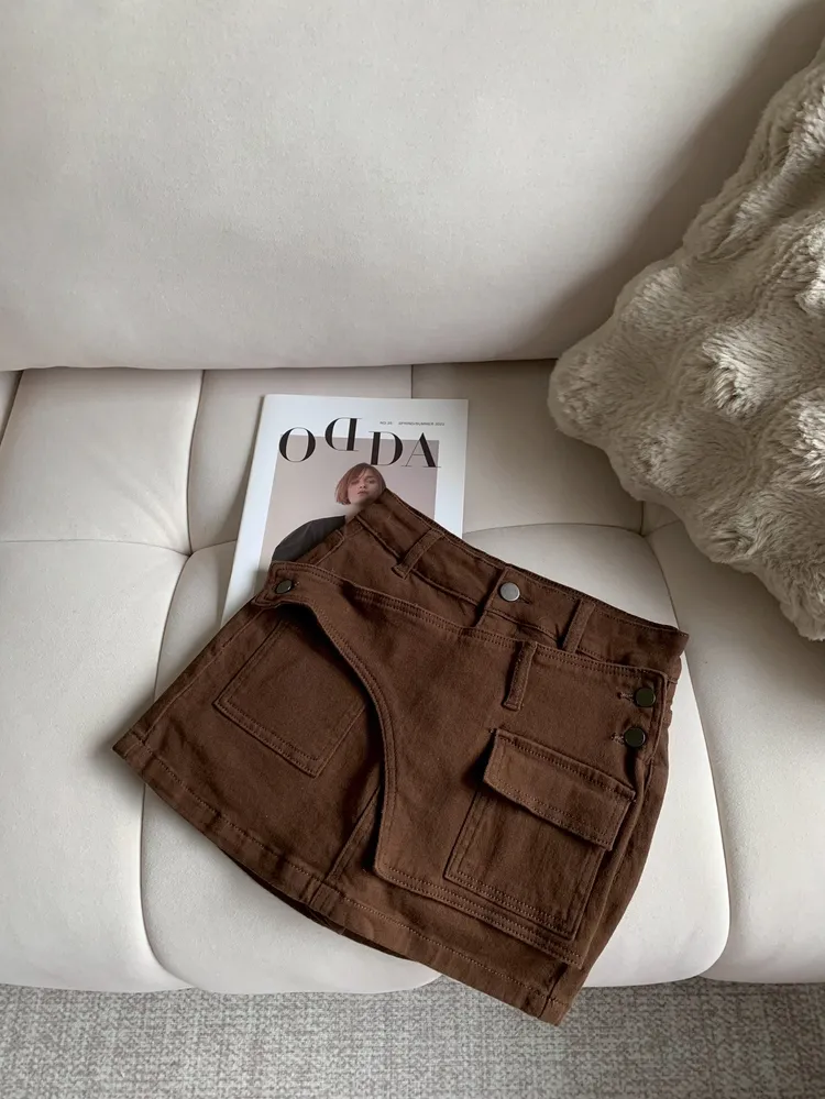 T126口袋設計側釦彈性褲裙