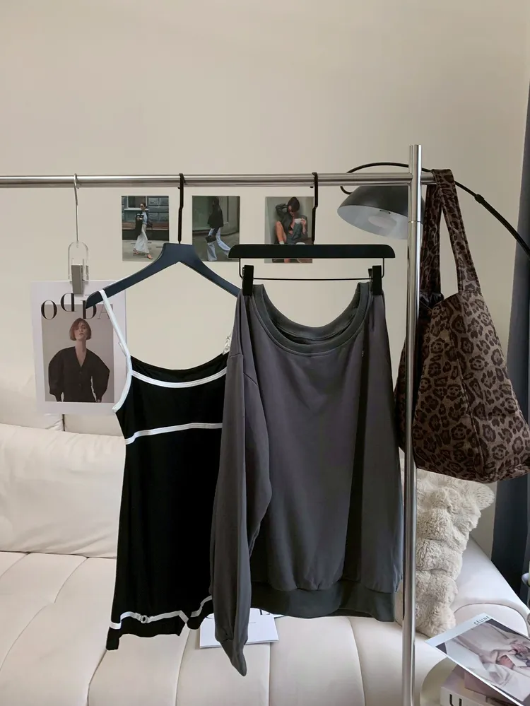 T147美式復古斜領兩件套裝