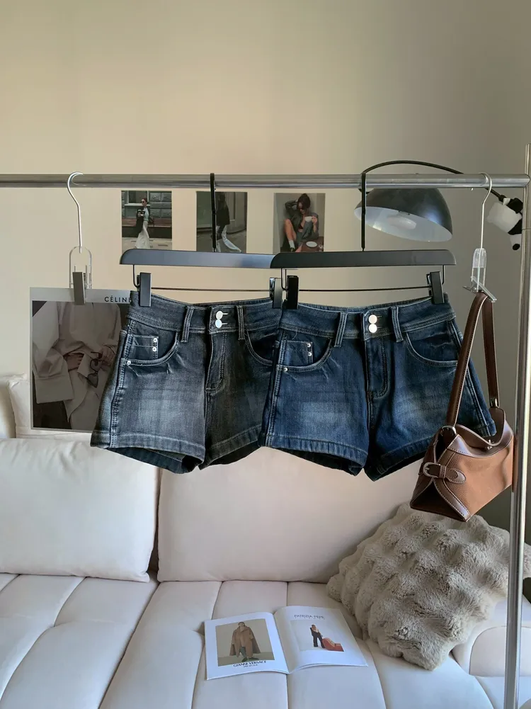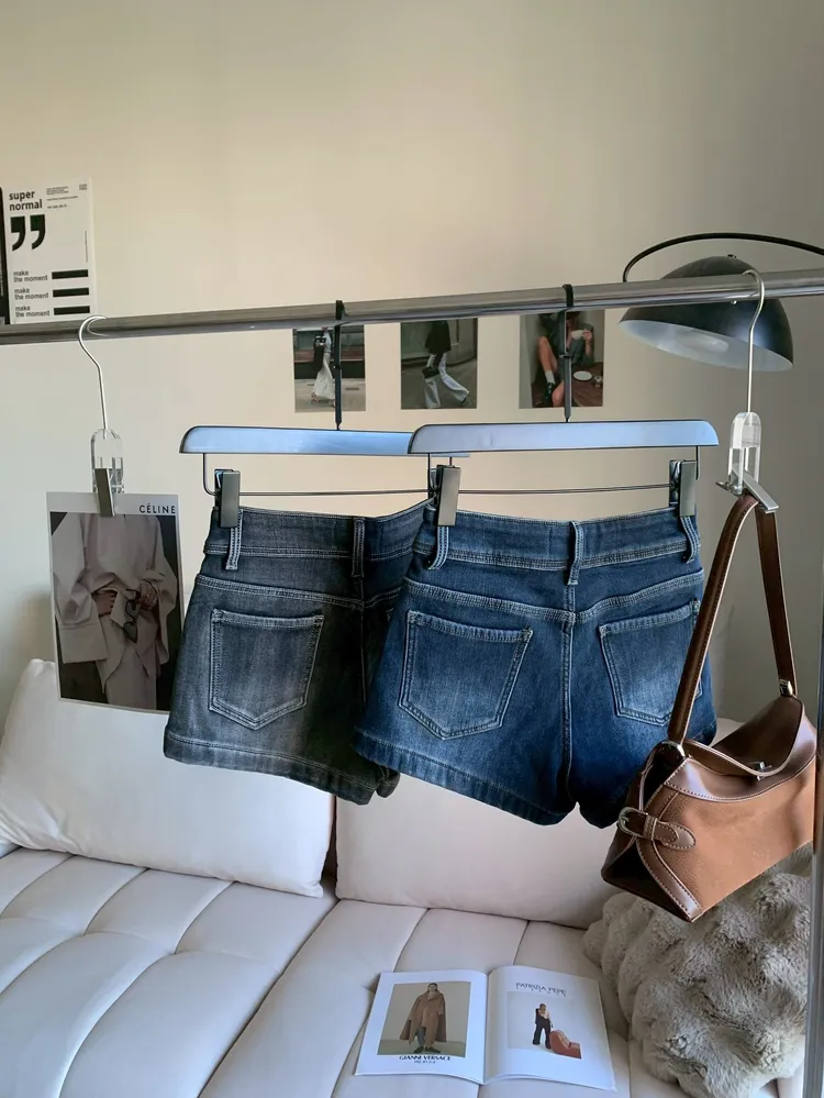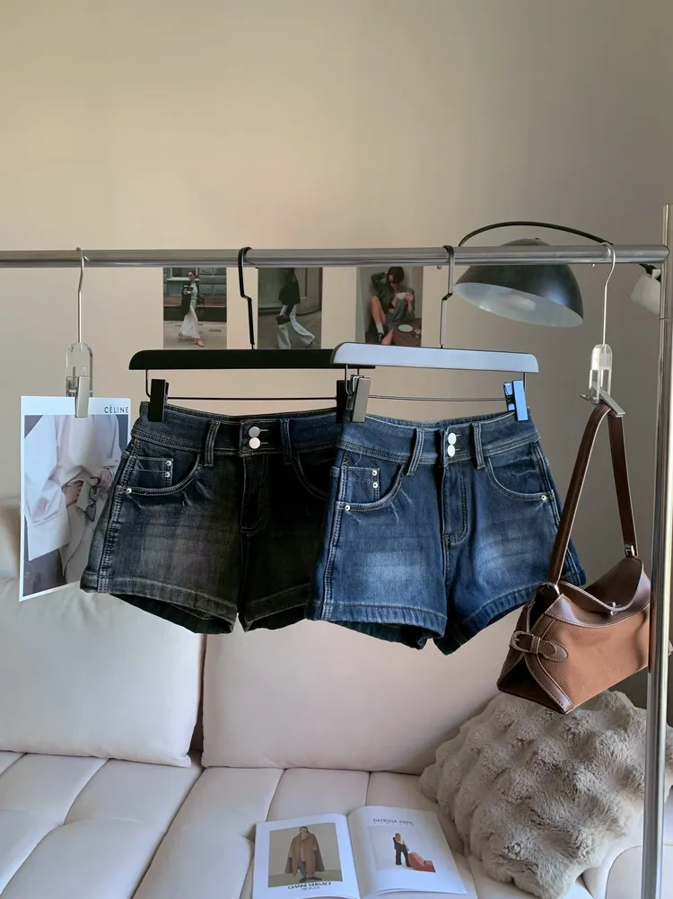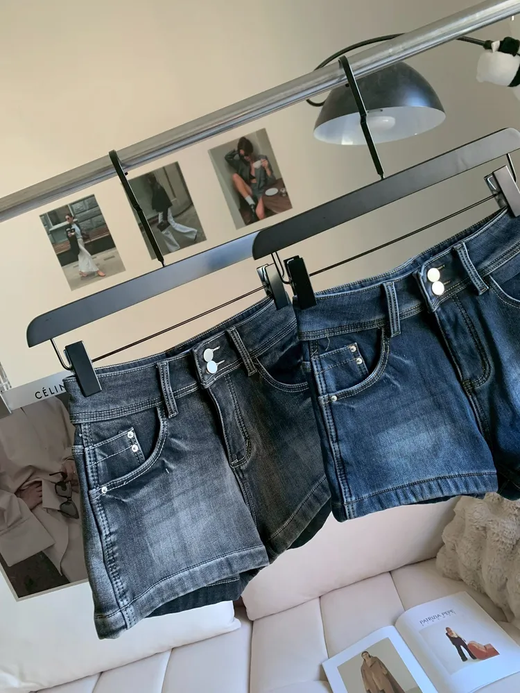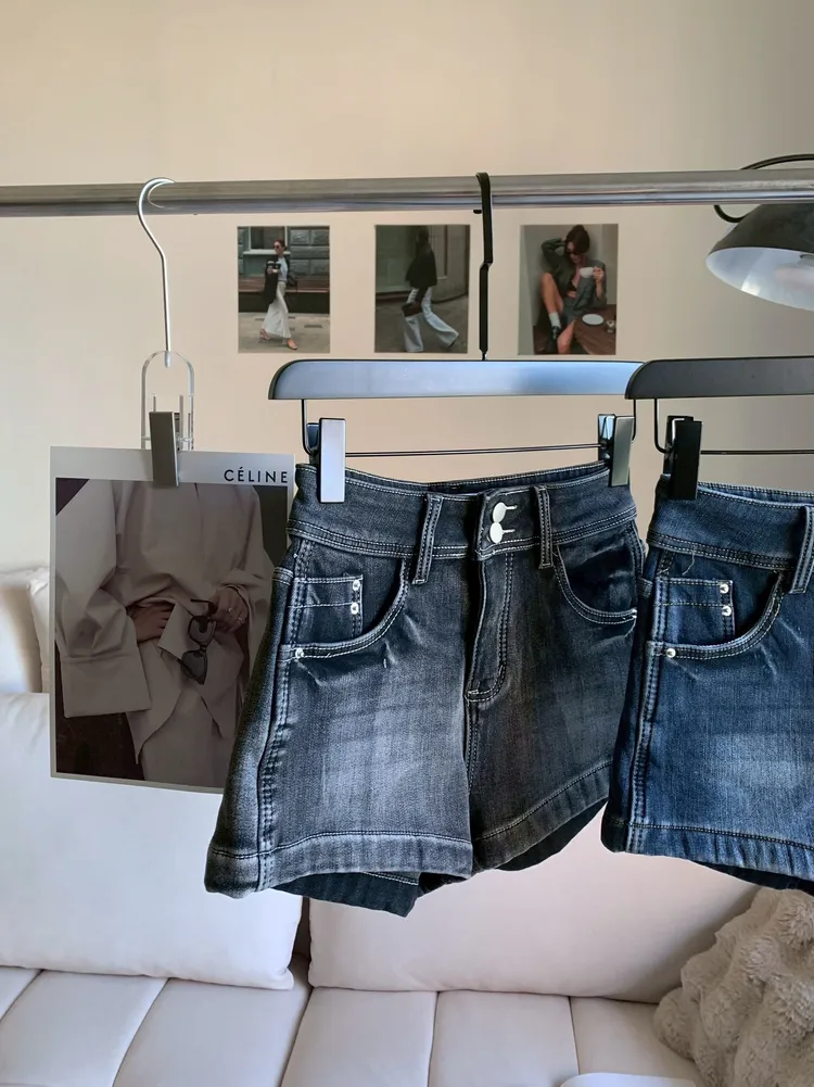 T152雙釦高腰彈性牛仔短褲