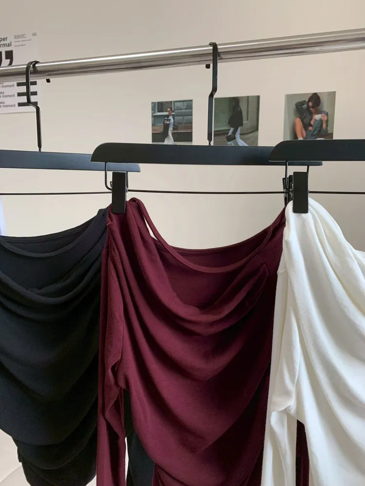 T181露肩抓摺軟彈收腰上衣