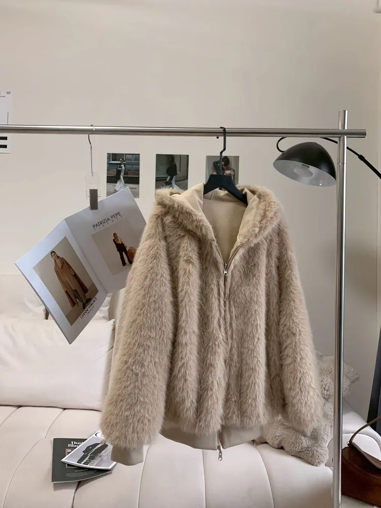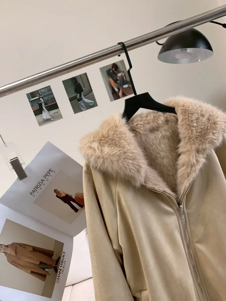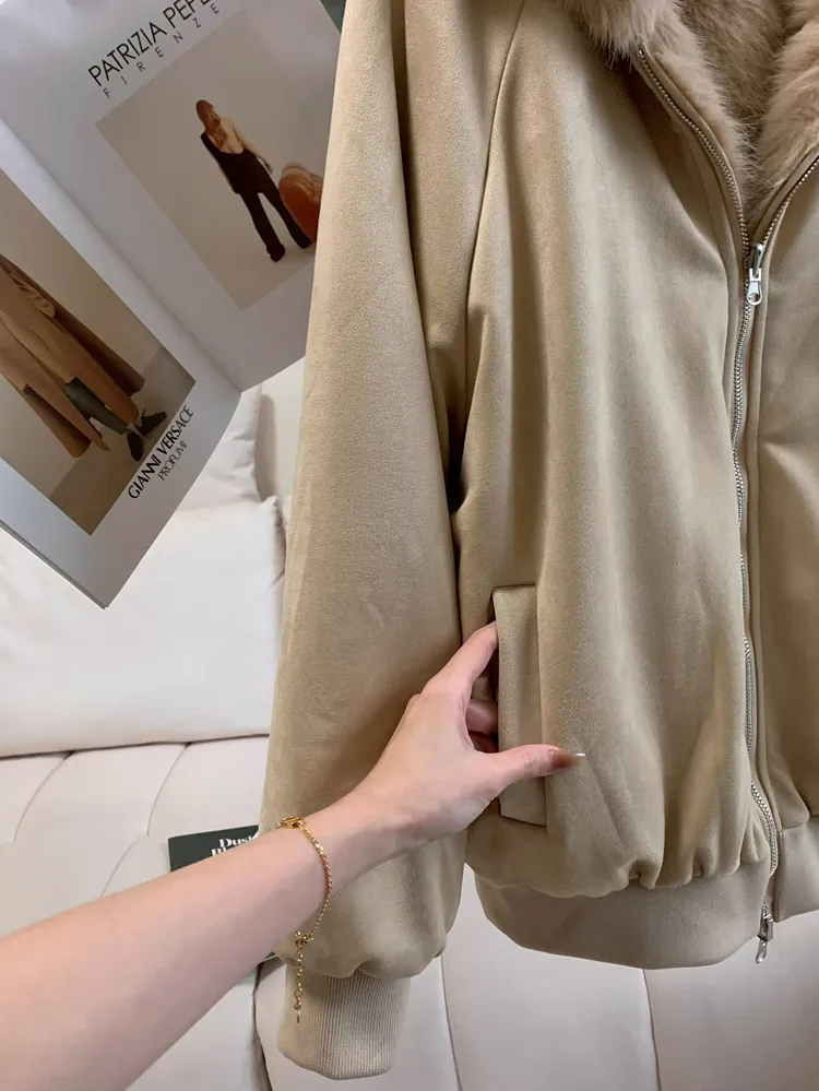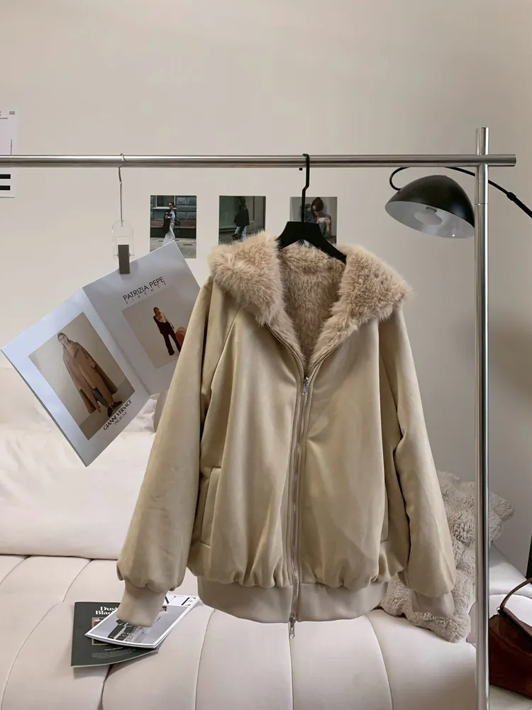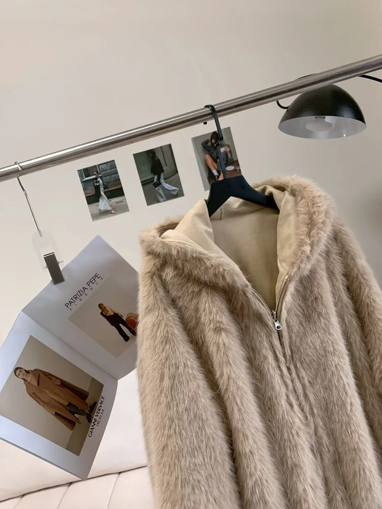 T409雙面穿♡奶茶杏長版連帽外套