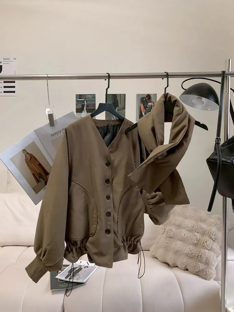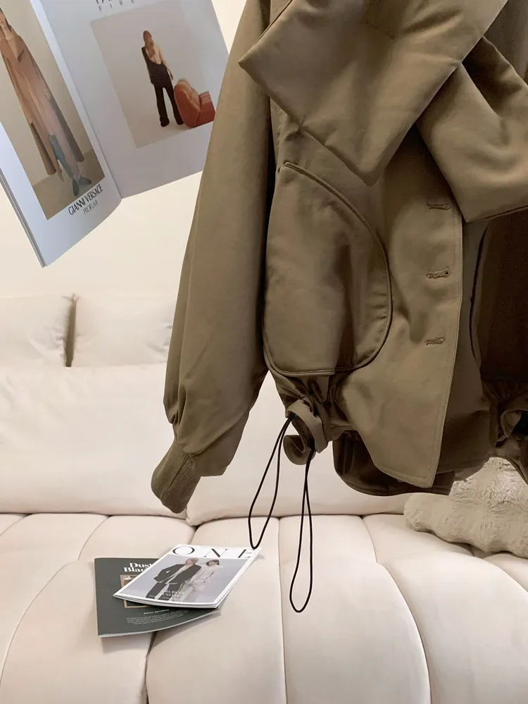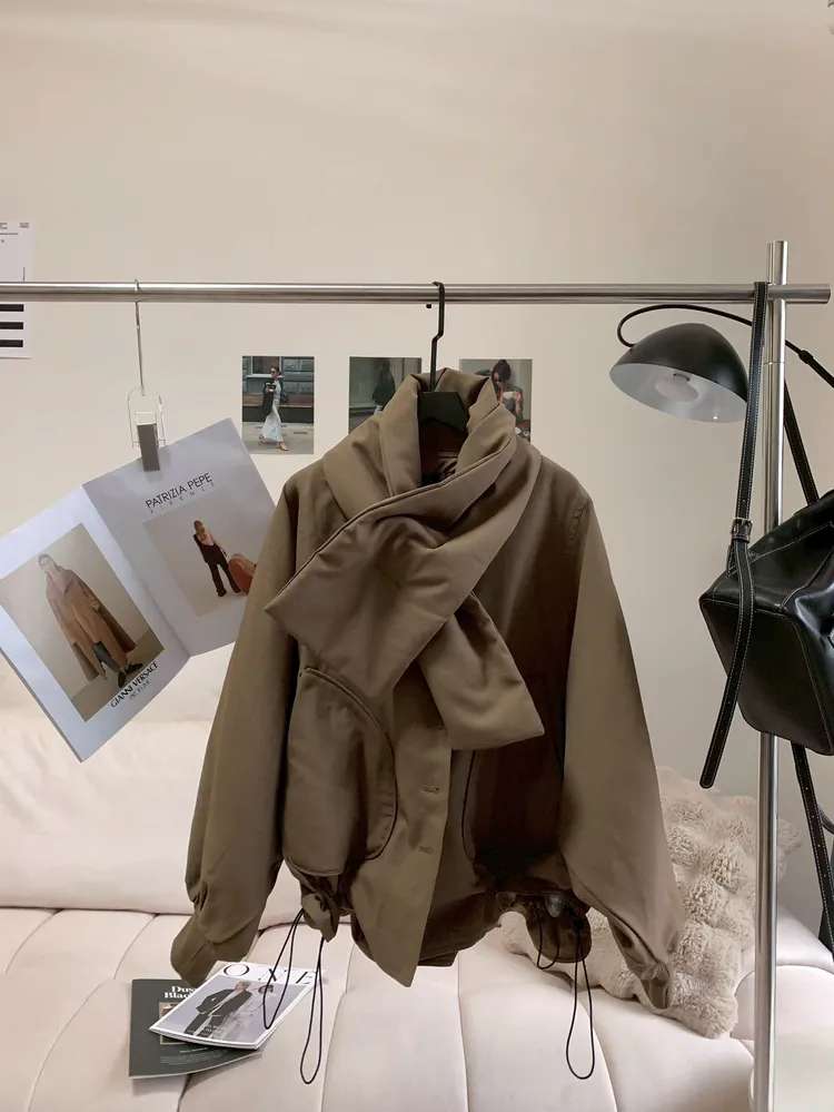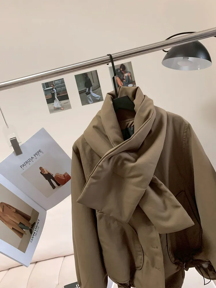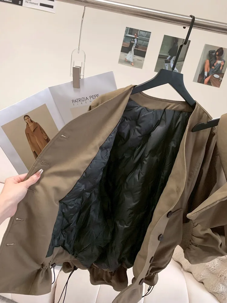 T413附領巾♡白鴨絨50%排釦抽繩外套