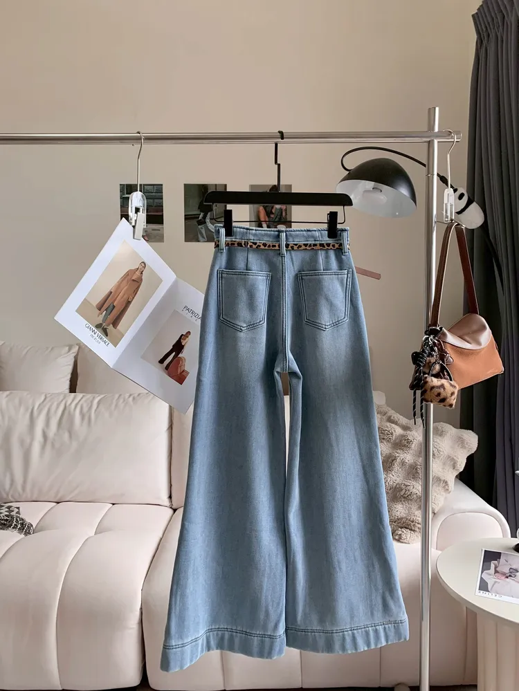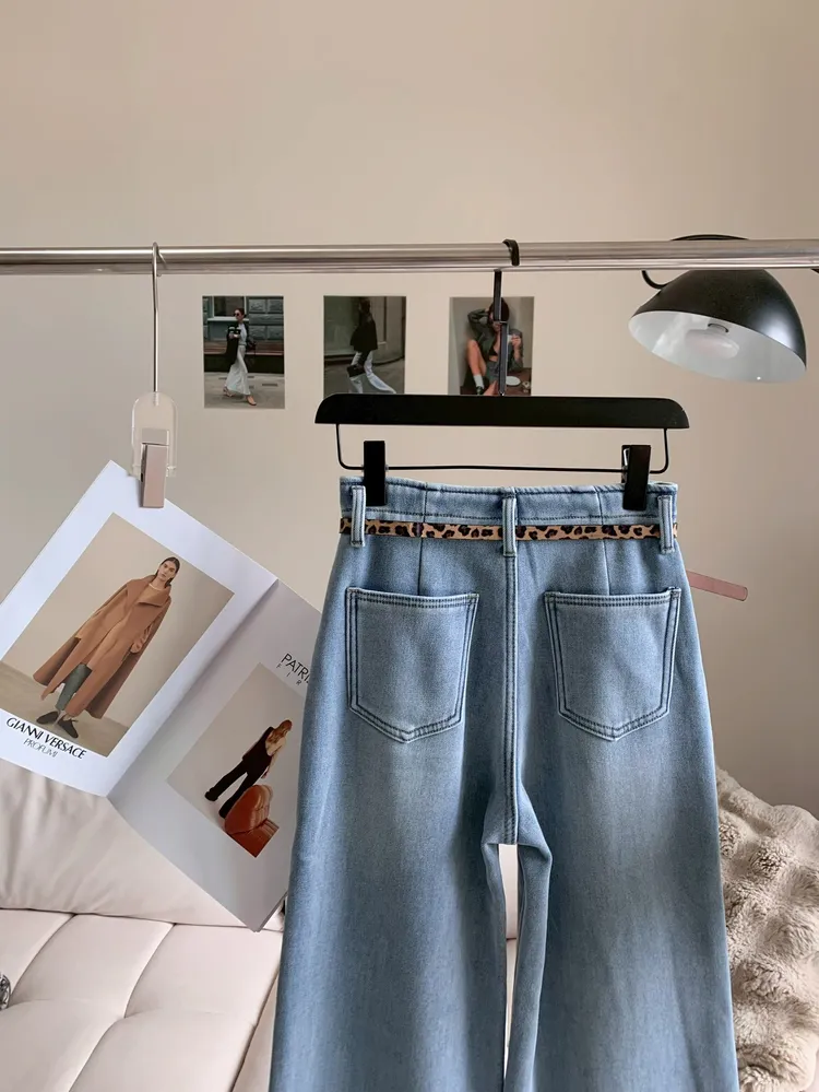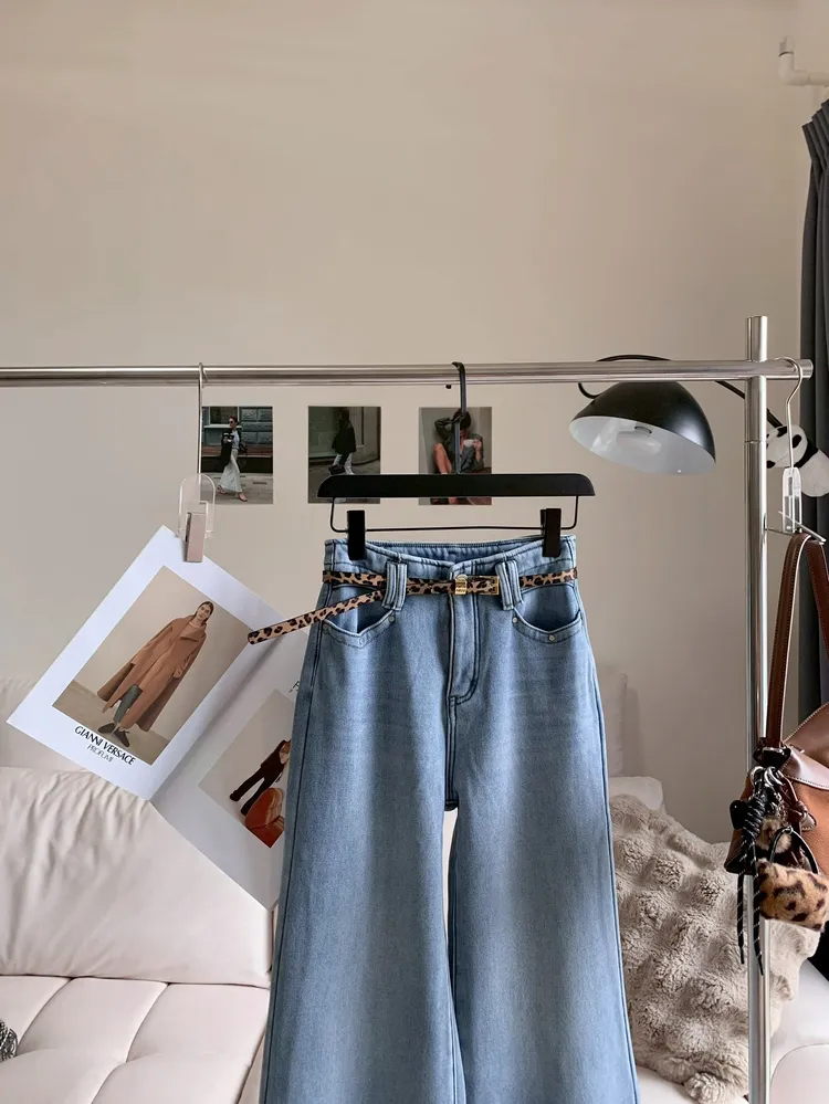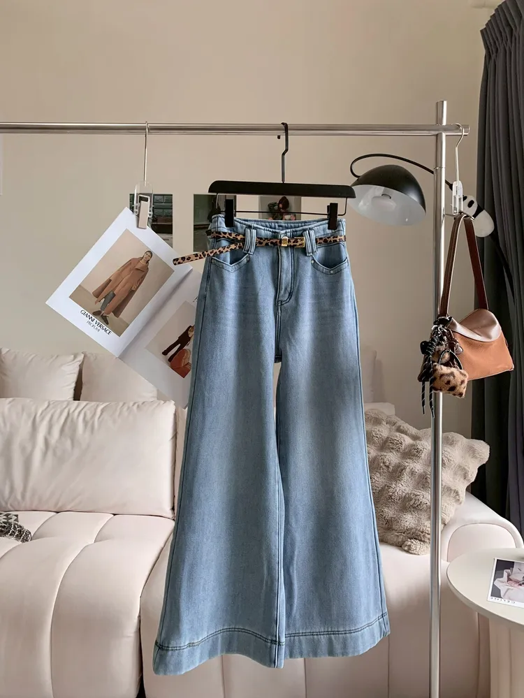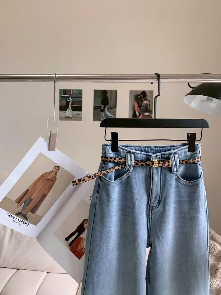 T507剪裁收腰A字寬褲♡附豹紋腰帶