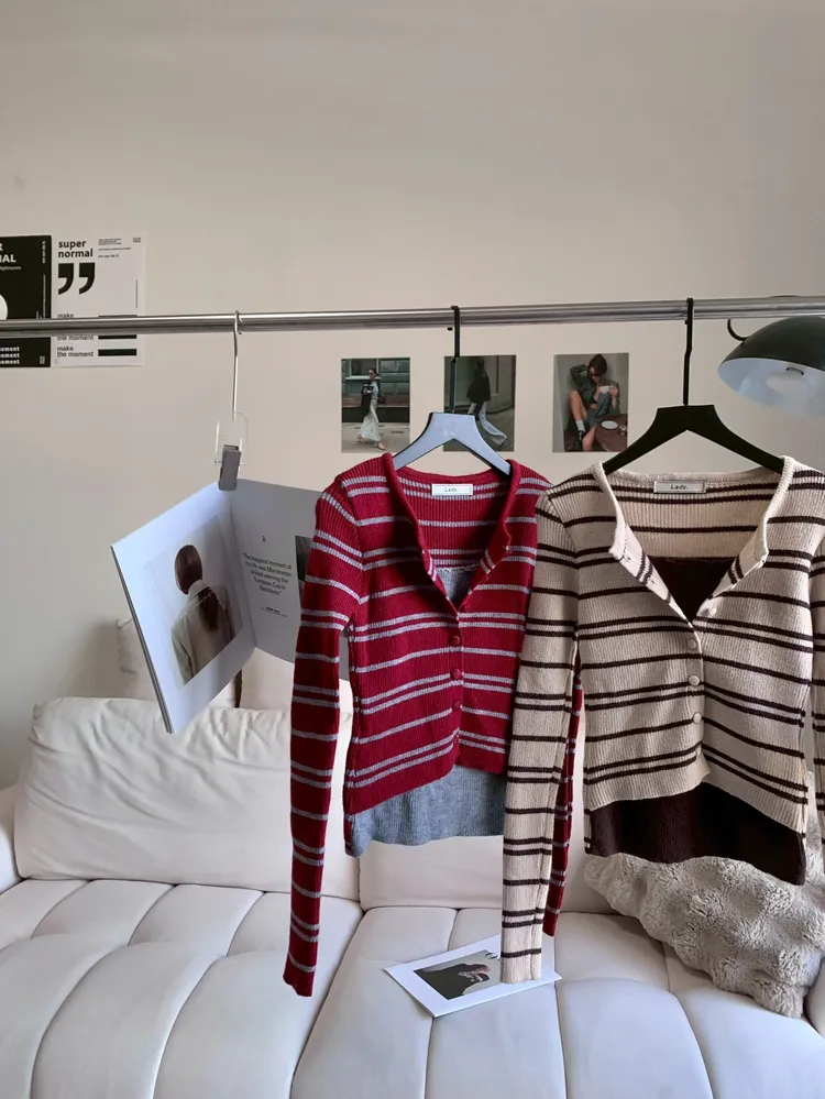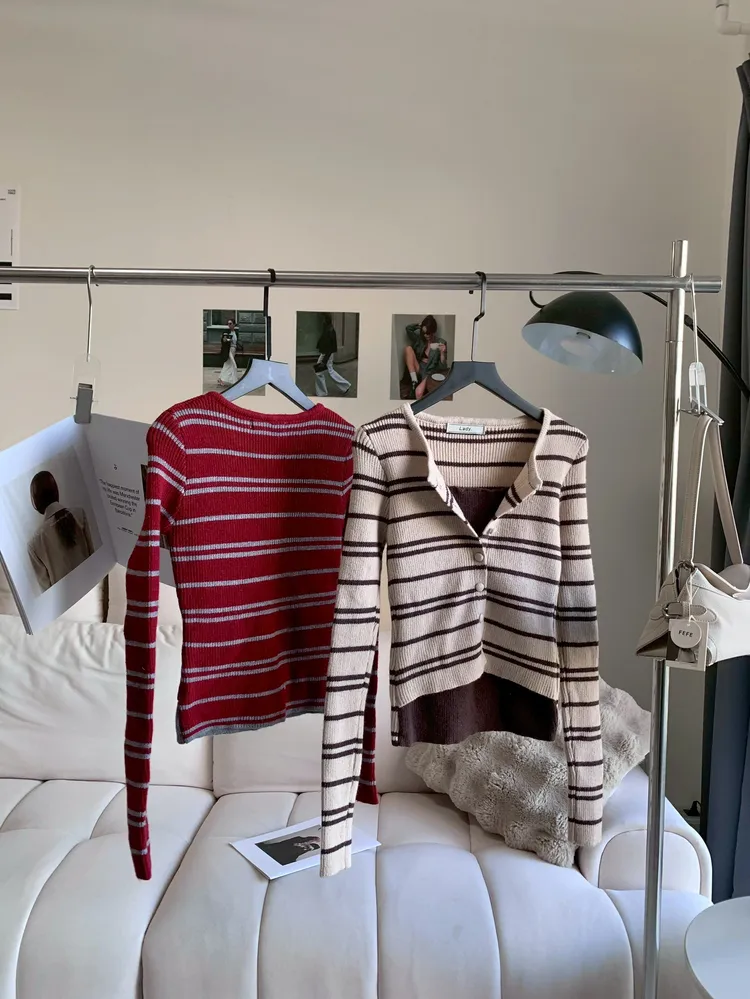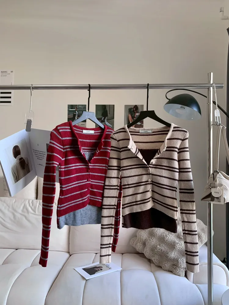 T542開襟撞色排扣針織上衣