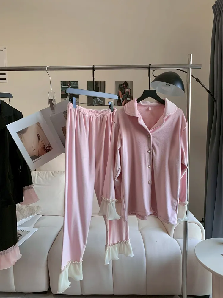 T563粉色珊瑚絨居家舒適套裝