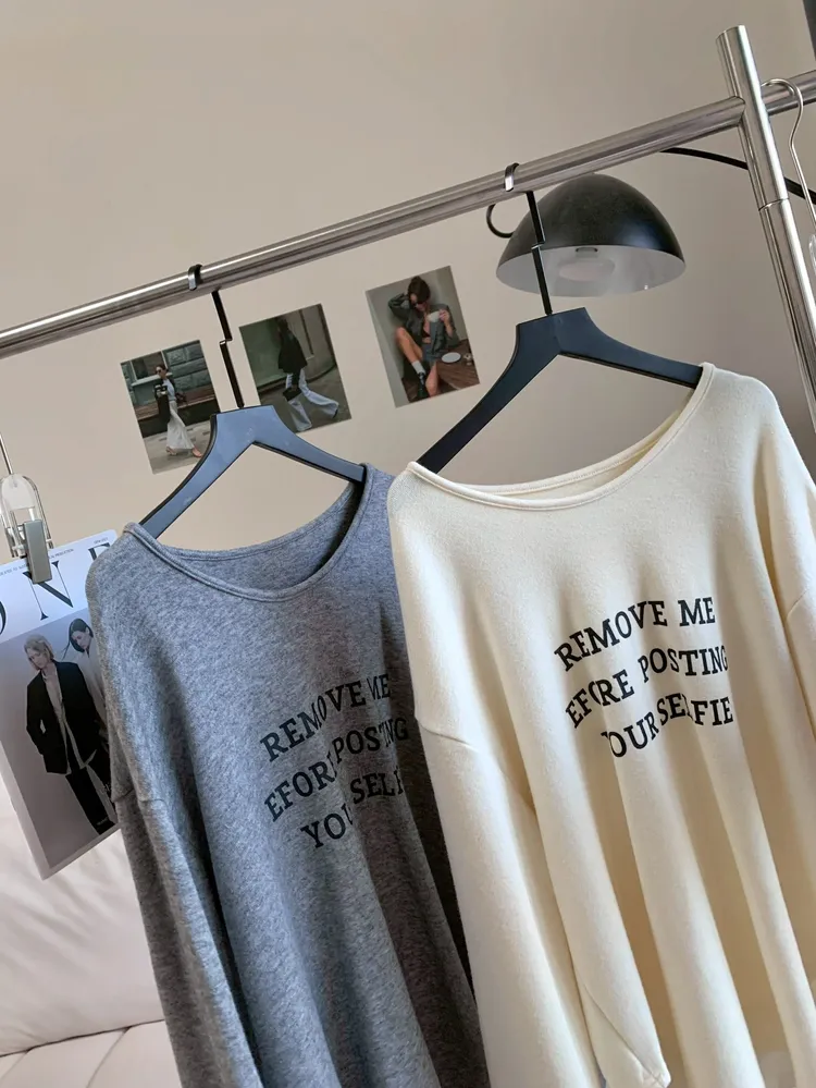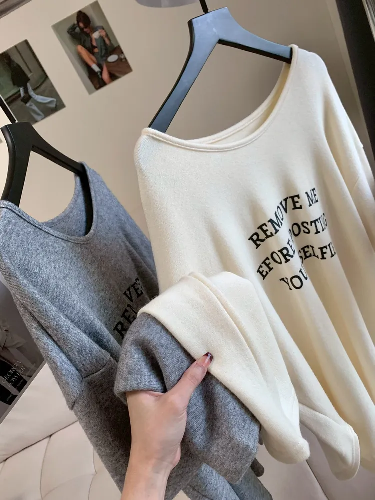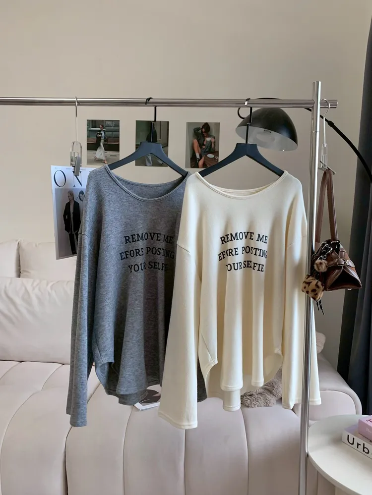 T606率性字母磨毛長版上衣