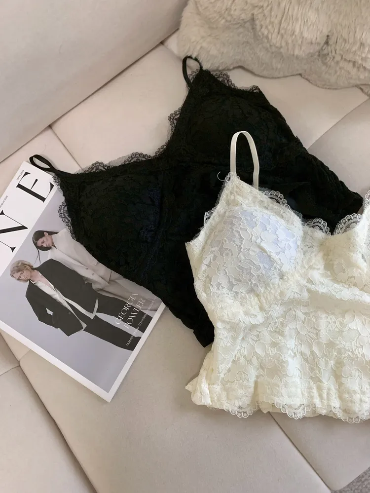 T618蕾絲細肩燈心絨背心