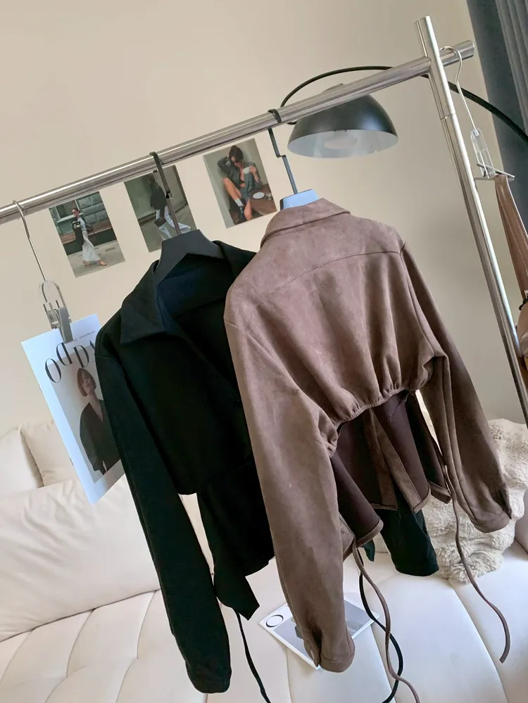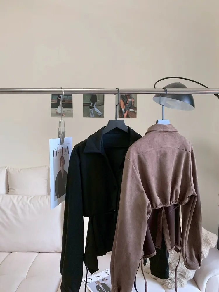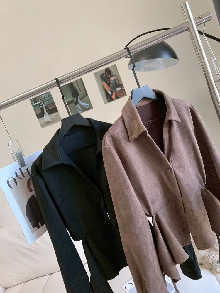 T621鹿皮絨綁腰修身襯衫