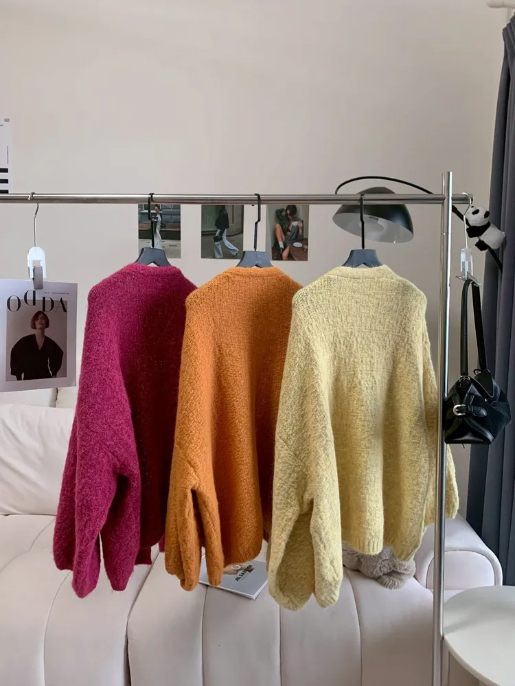 T633多巴胺澎袖彩色毛衣外套
