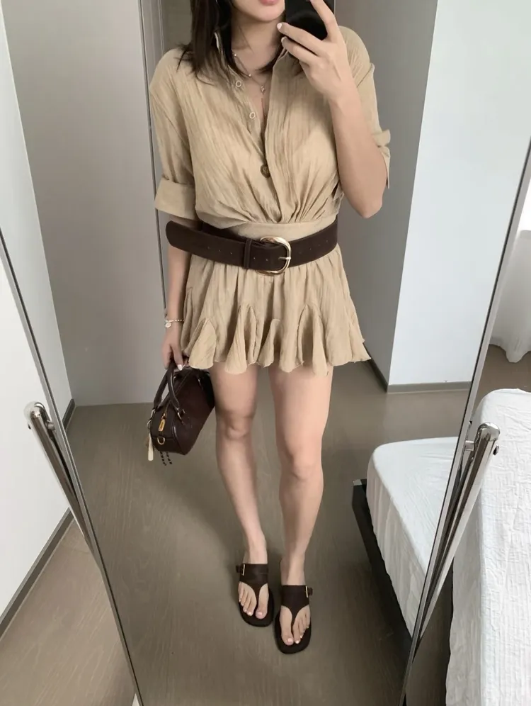 T726棉麻襯衫連身裙