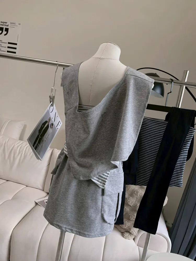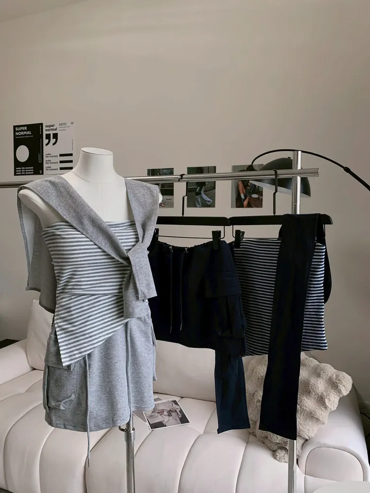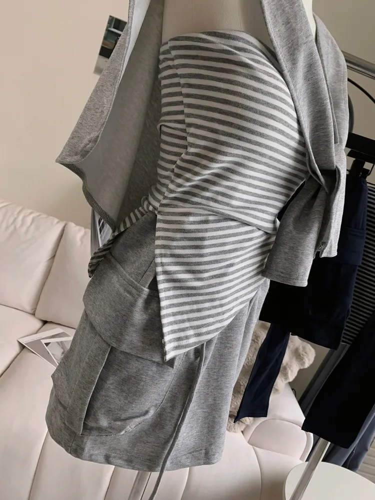 T760條紋披肩短裙三件套