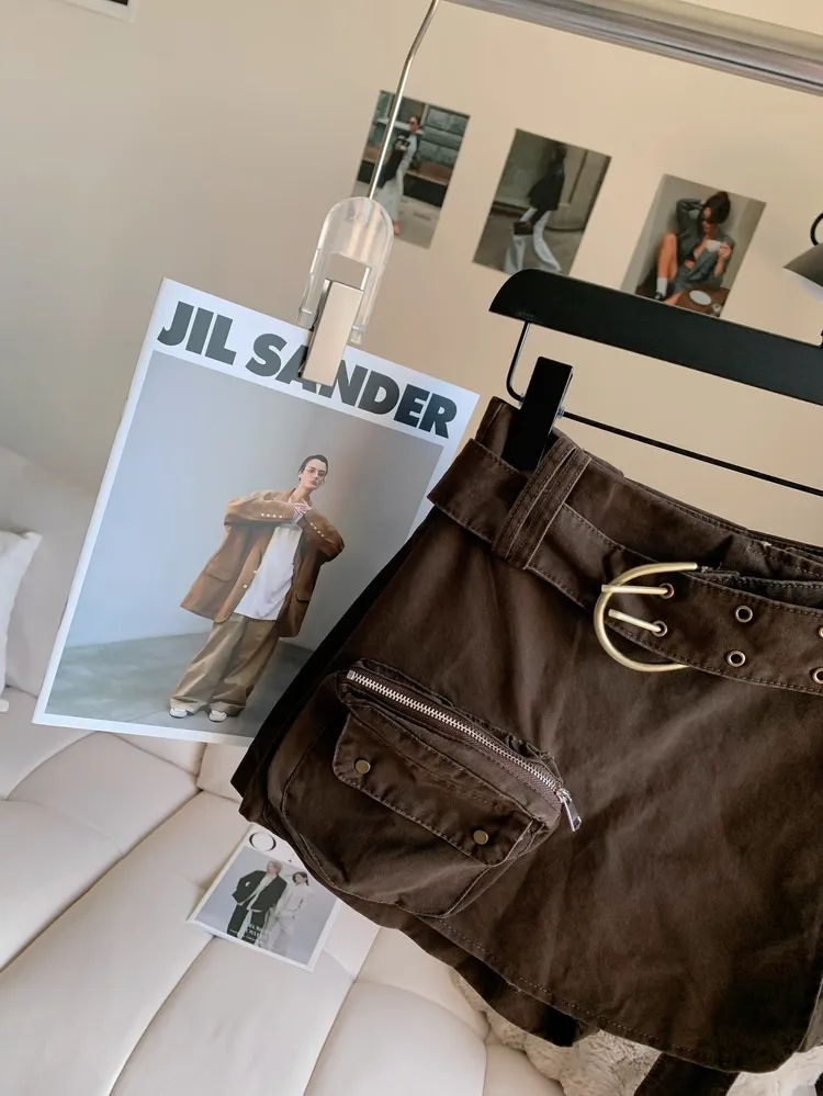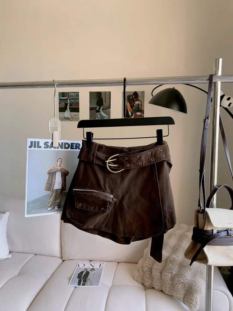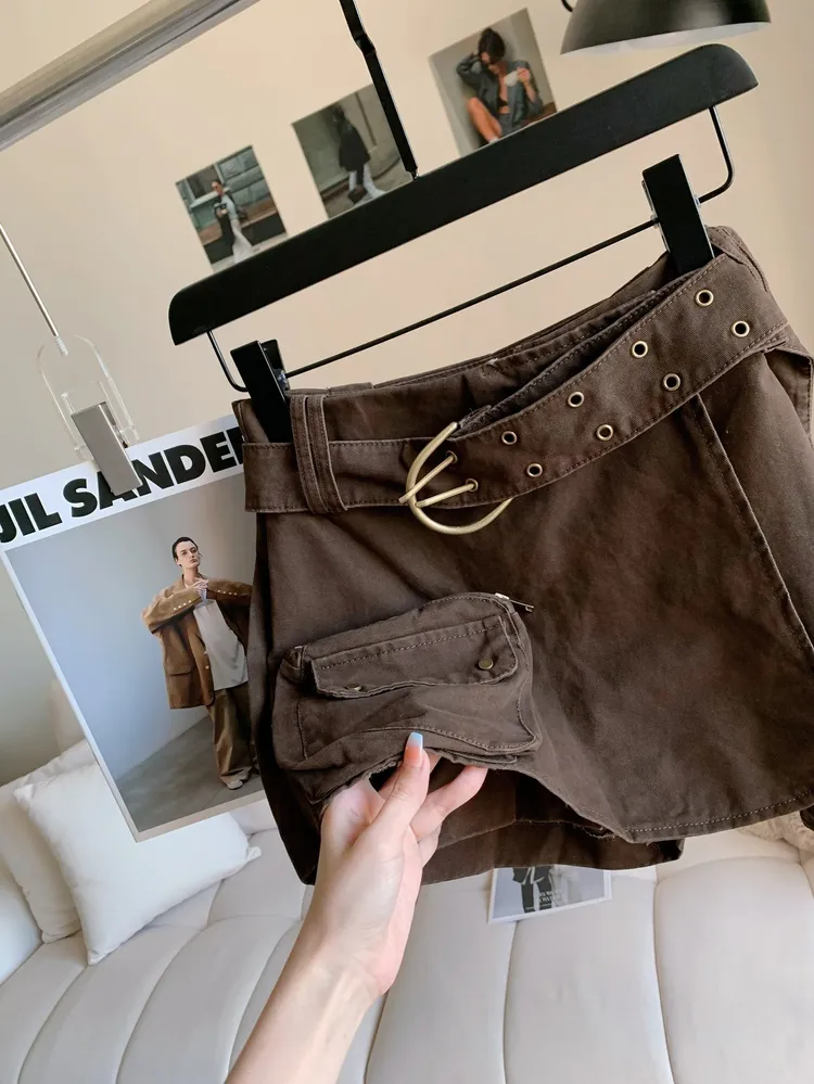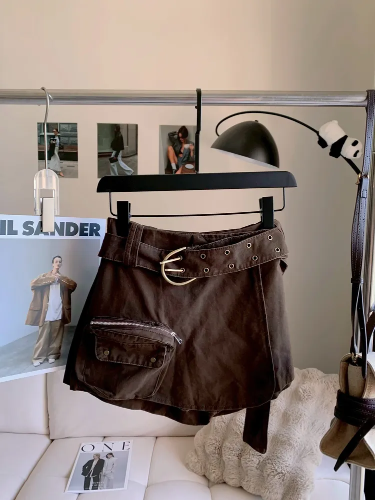 T854腰帶水洗感工裝褲裙