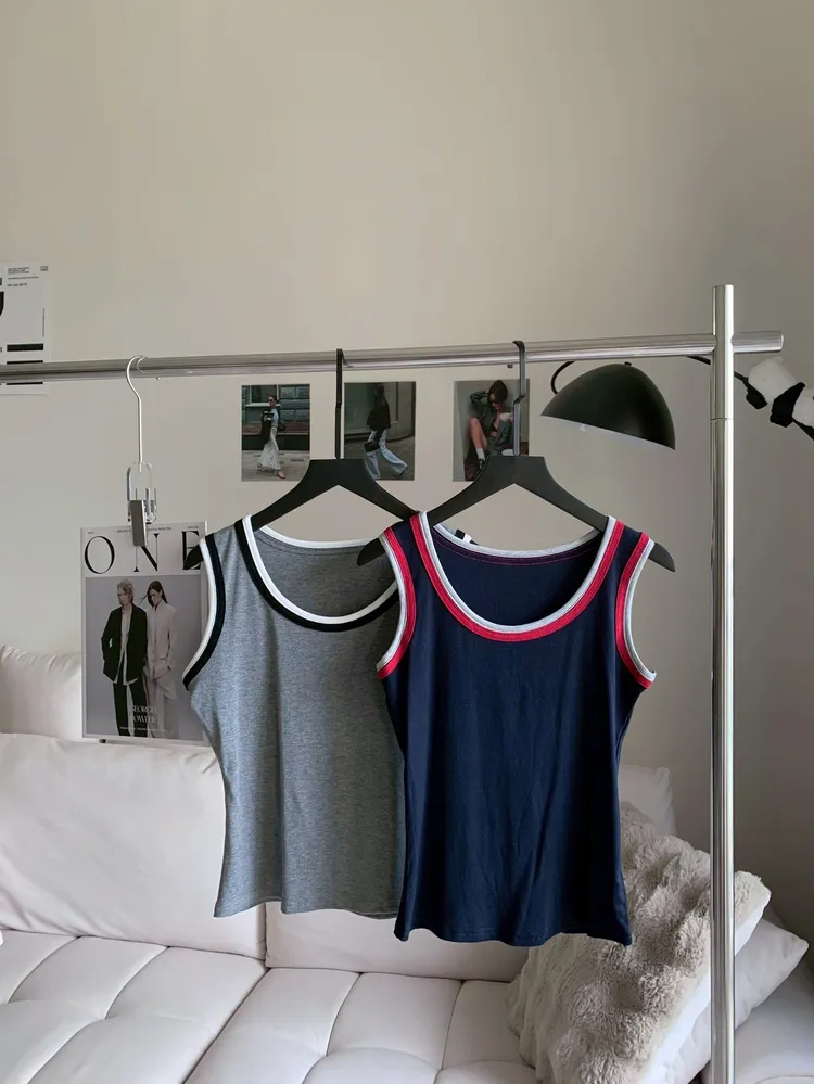 T950撞色線條圓領背心