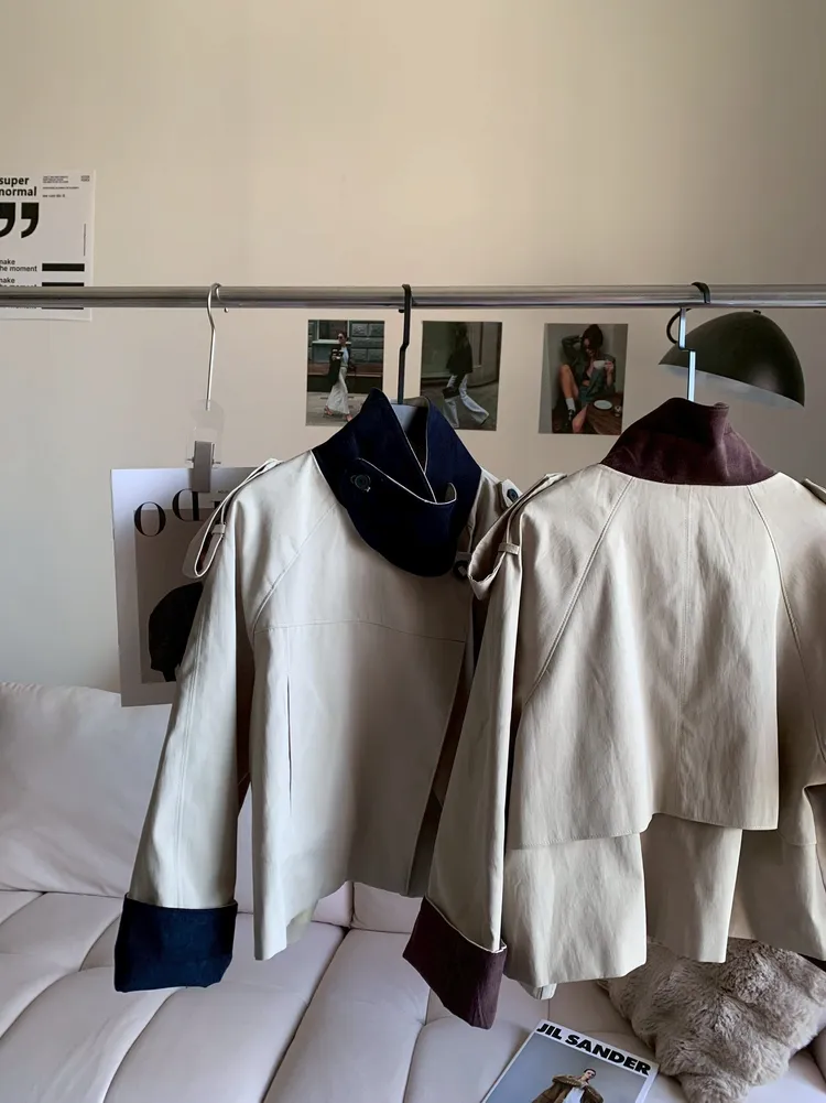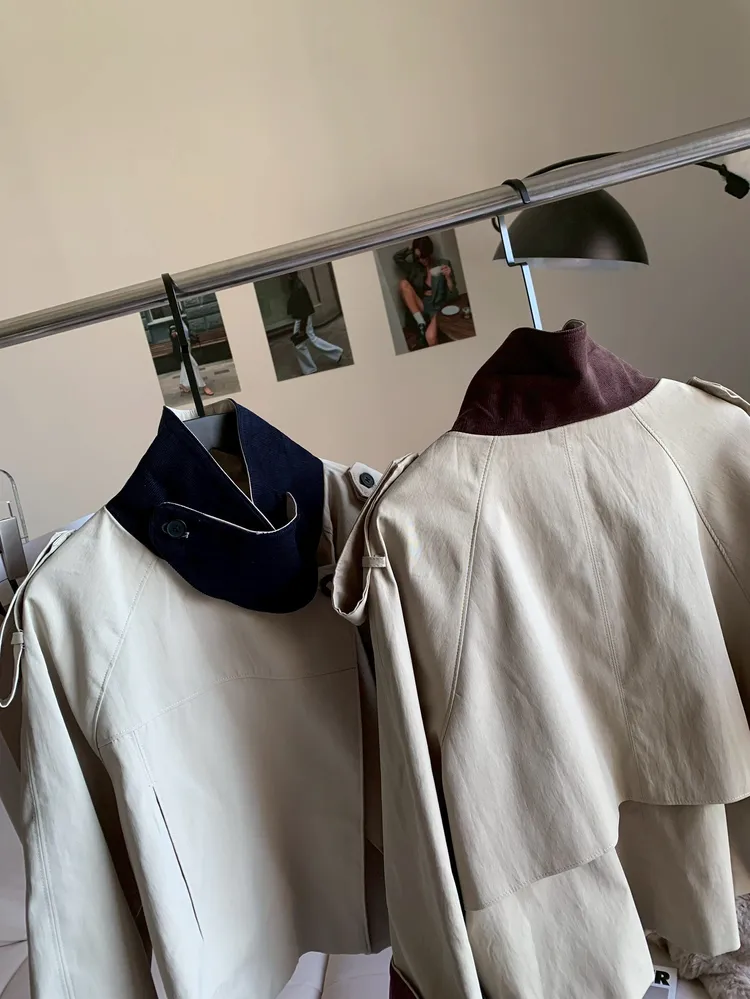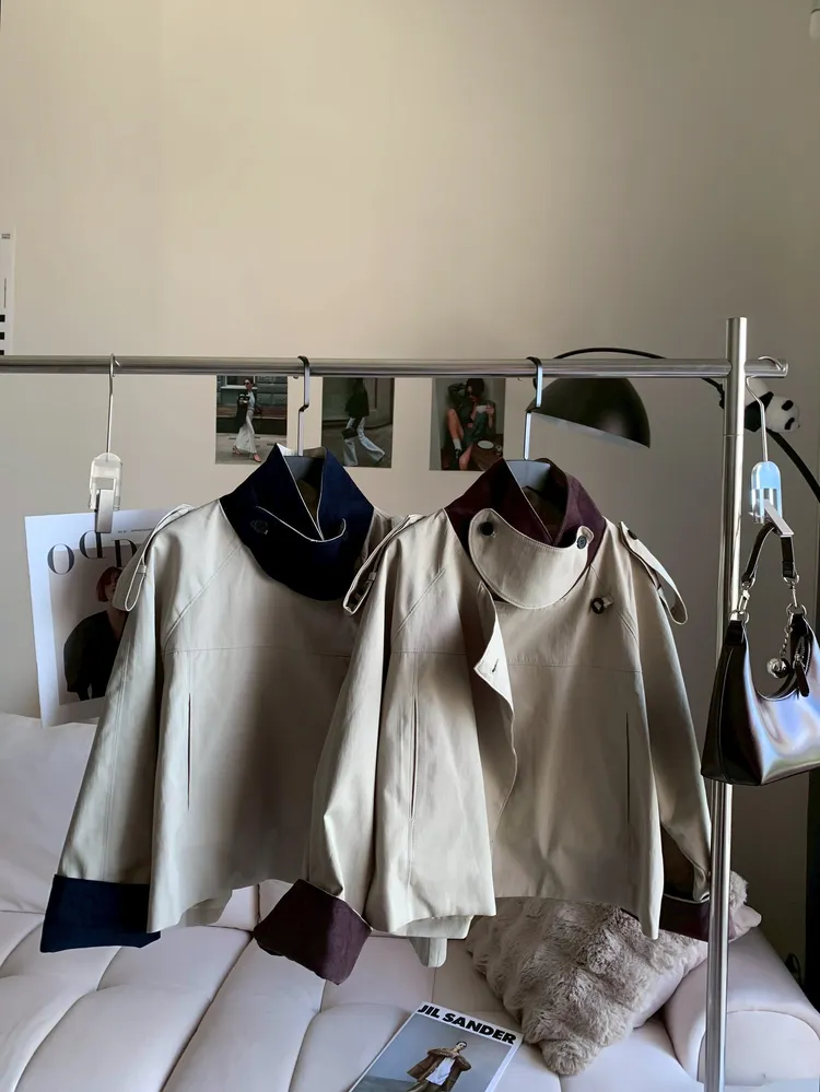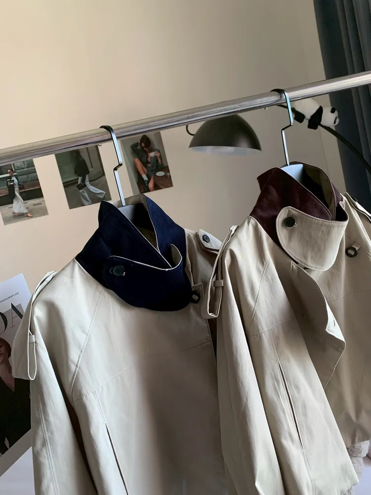 T966撞色翻領風衣外套