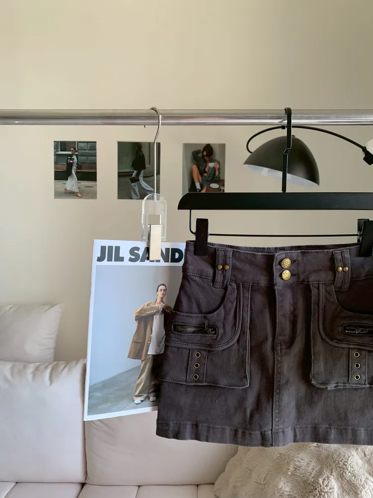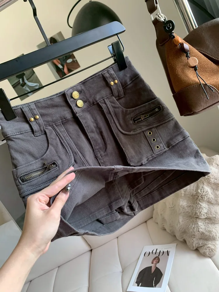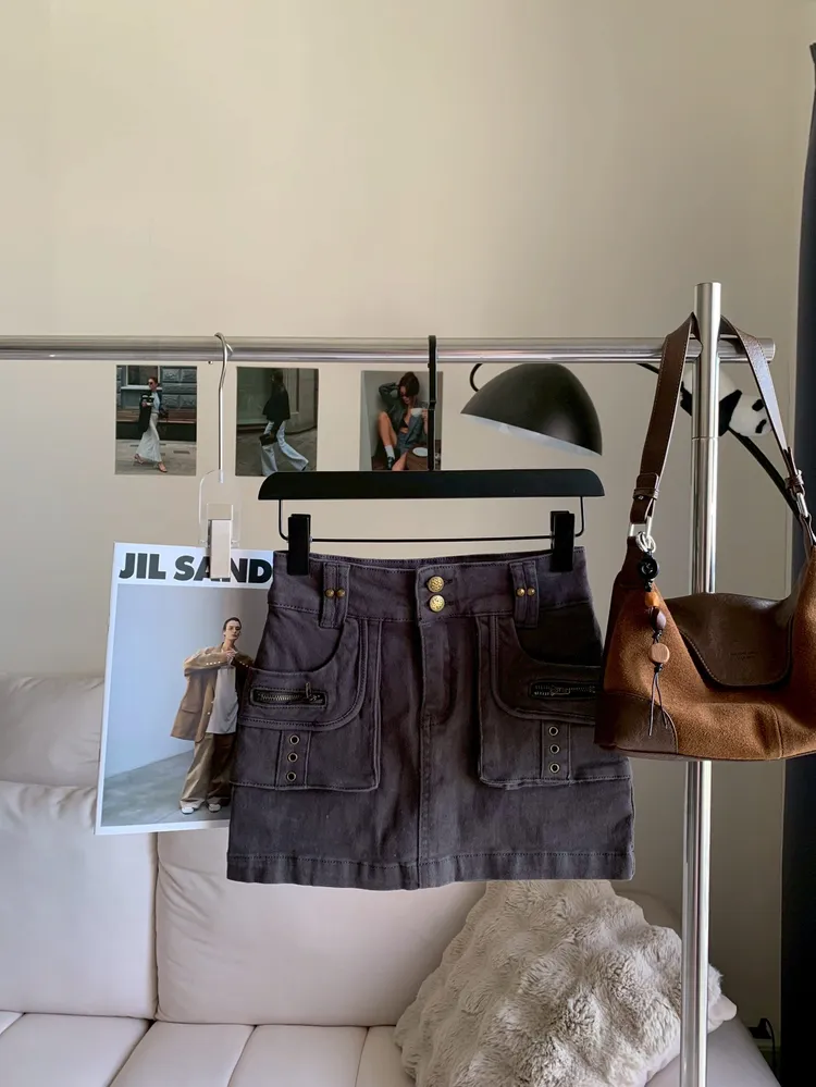 T972水泥灰彈性口袋短裙