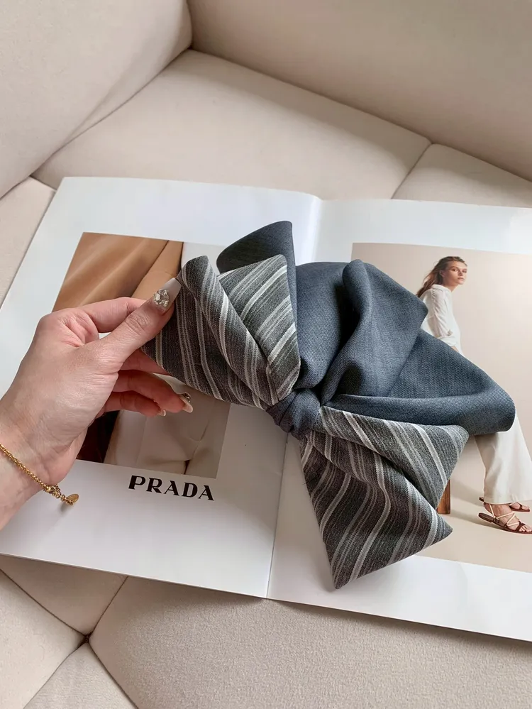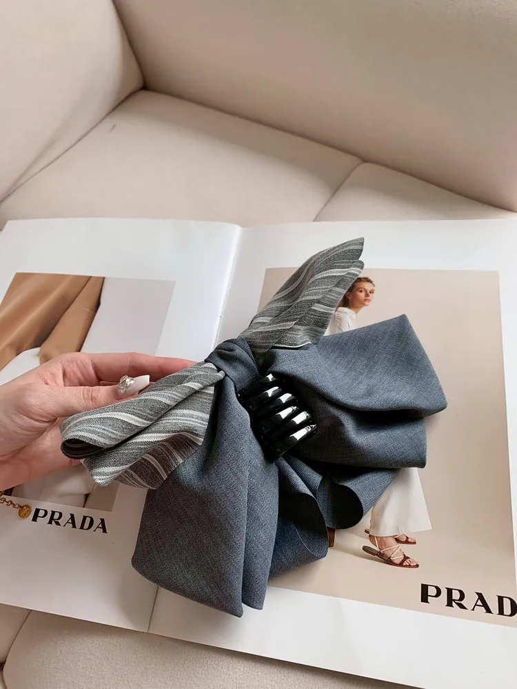 Z019蝴蝶結條紋拼接髮夾